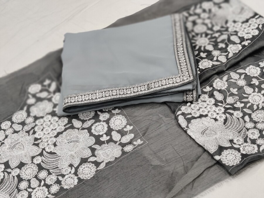 FABRIC : MONO BANGLORY SILK WITH HEAVY EMBROIDERY FRONT AND BACK BOTH SIDE WORK