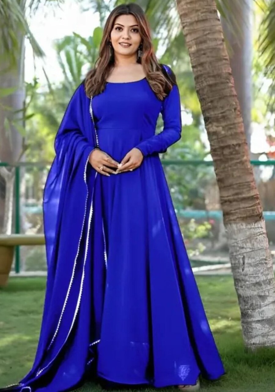 FASHIONABLE GEORGETTE PLAIN FLAIRED ANARKALI GOWN WITH DUPATTA BLUE