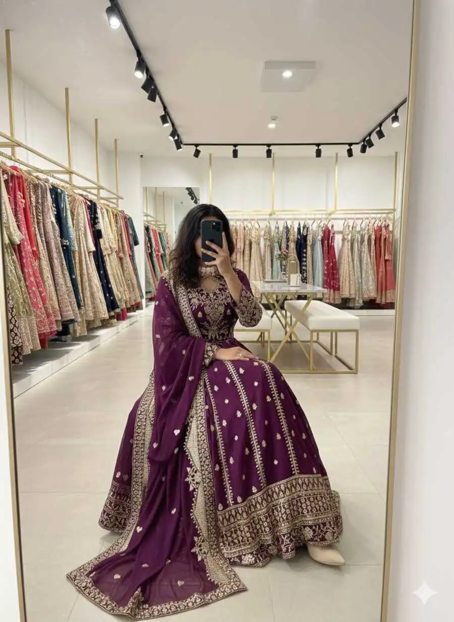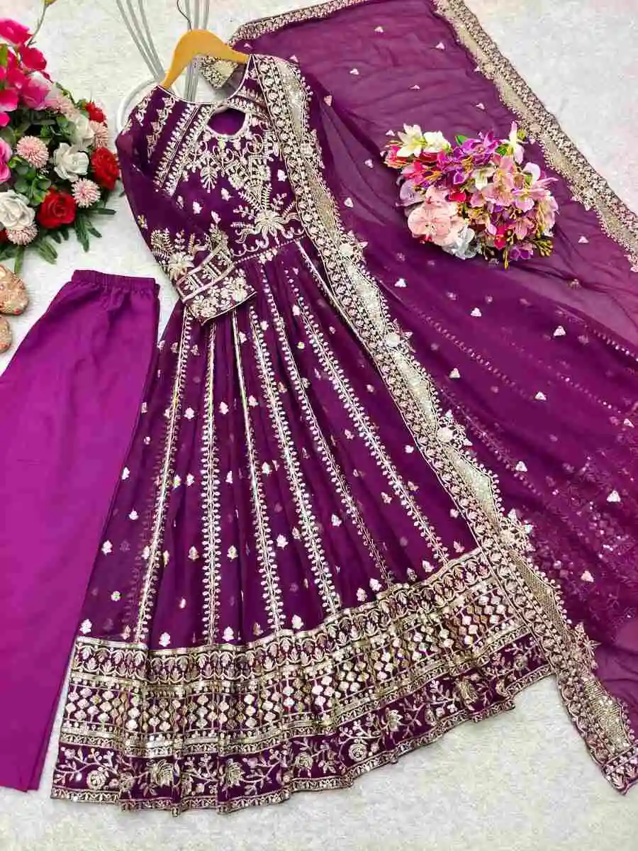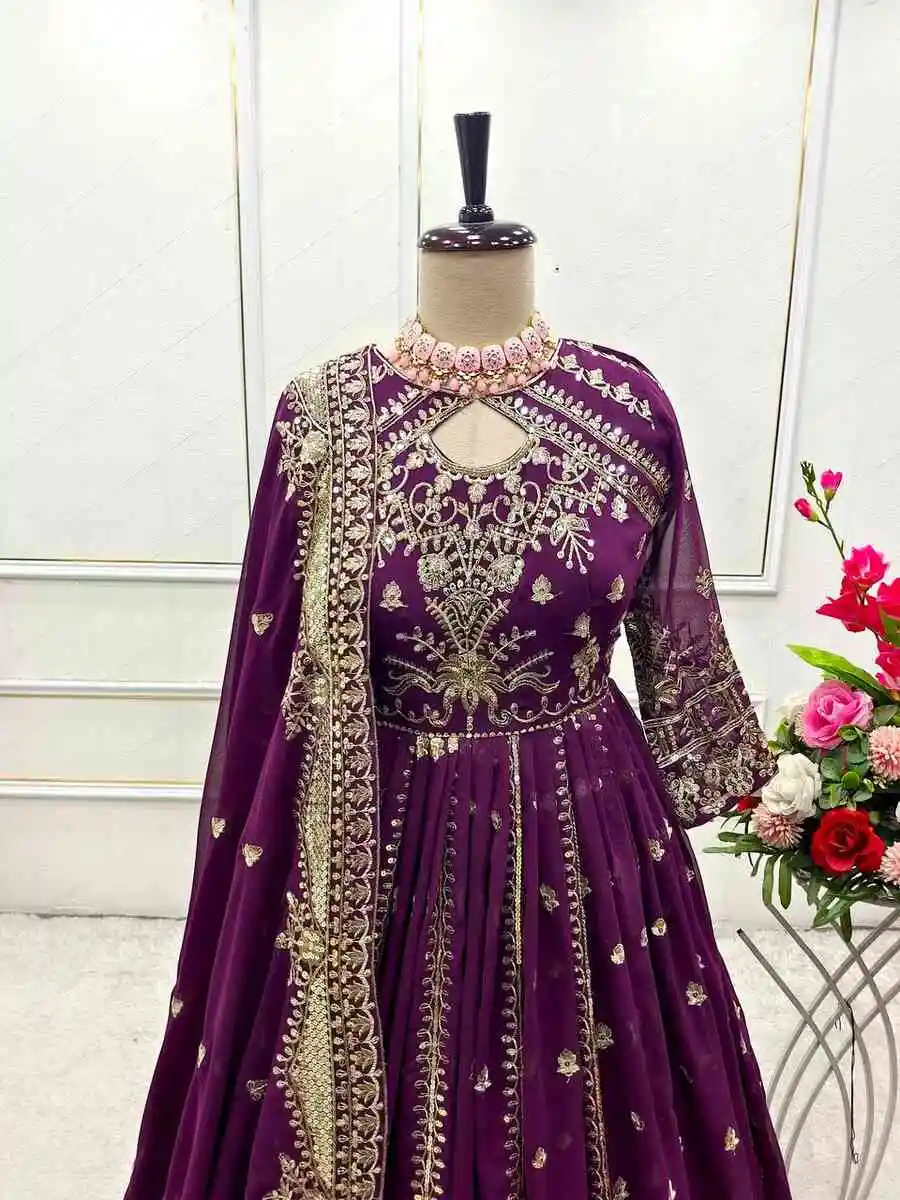 FASHIONABLE GEORGETTE SEQUENCE EMBROIDERY WORK GOWN BOTTOM WITH DUPATTA PURPLE