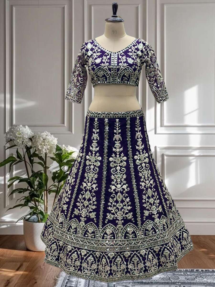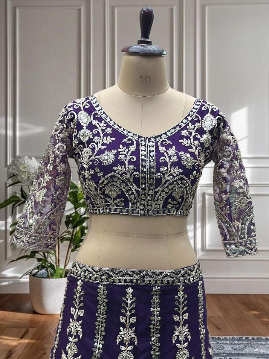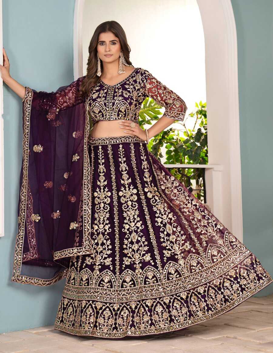 FASHIONABLE NET EMBROIDERY SEQUENCE DESIGN WORK LEHENGA CHOLI WITH DUPATTA PURPLE