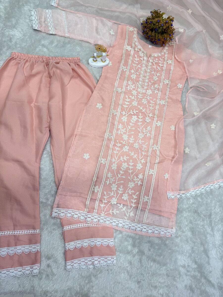 FASHIONABLE ORGANZA CHAIN WORK TOP BOTTOM WITH DUPATTA PEACH