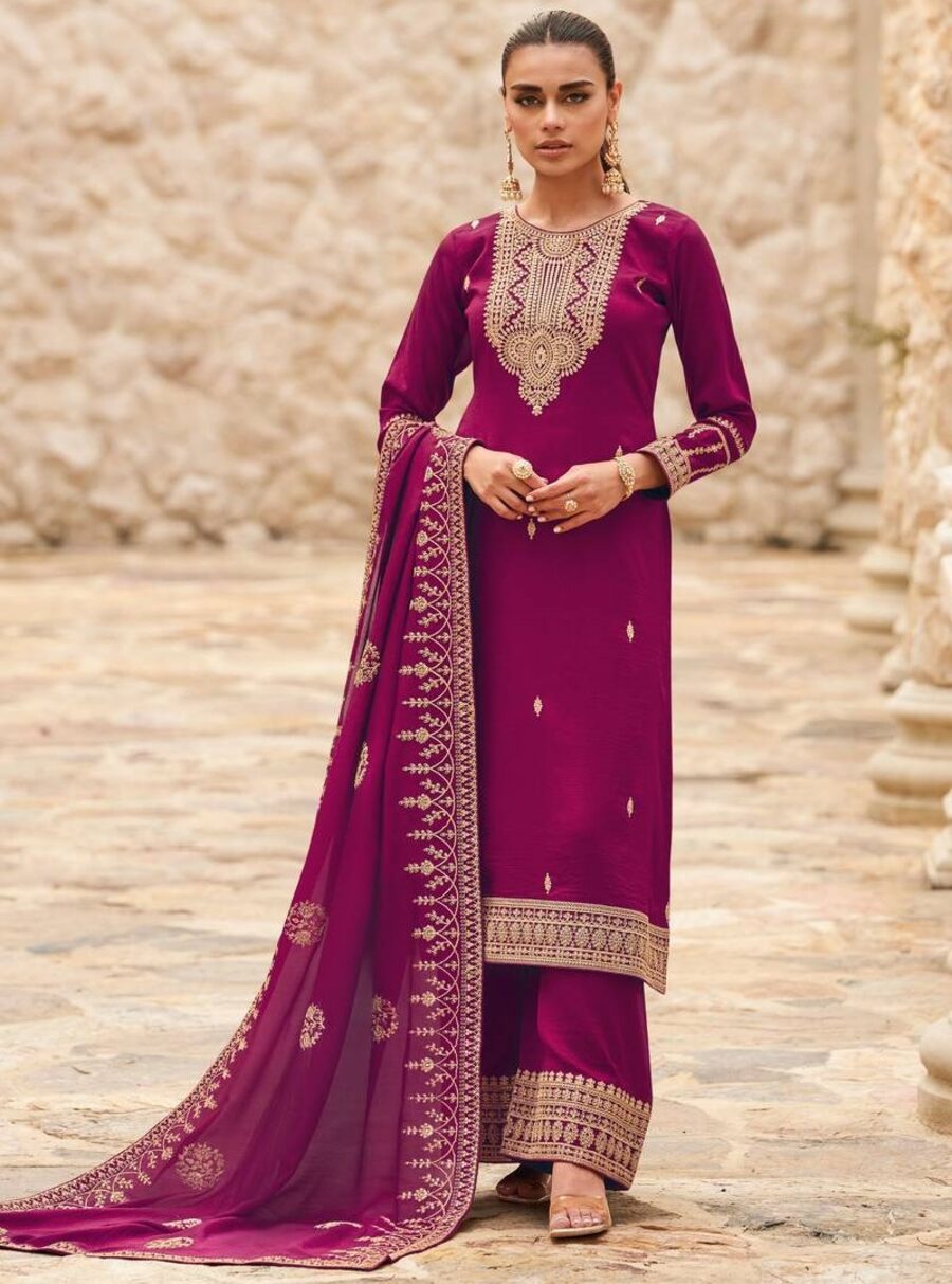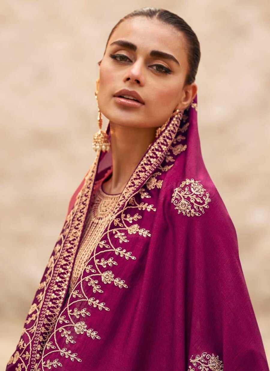 FASHIONABLE VICHITRA SILK EMBROIDERY ZARI SEQUENCE WORK TOP BOTTOM WITH DUPATTA WINE