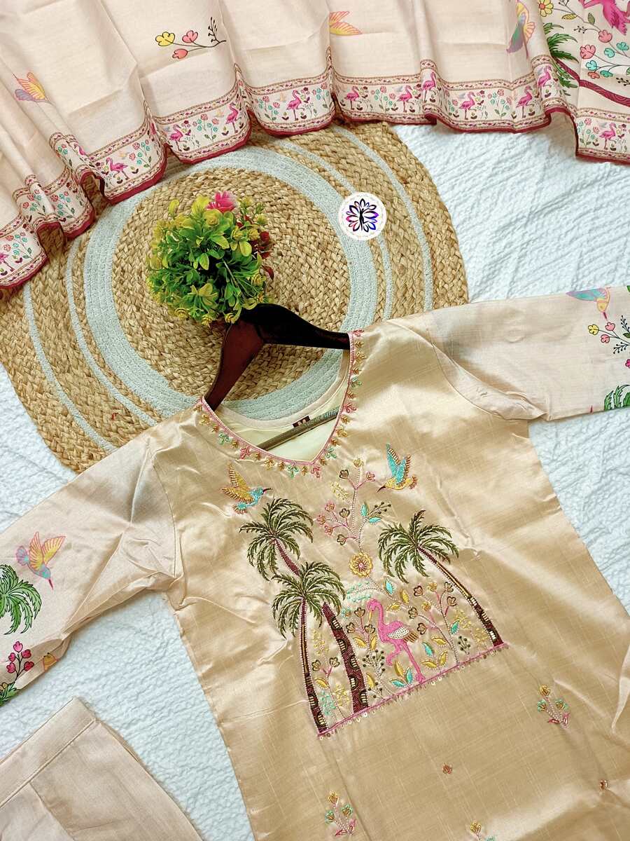 FASHIONABLE VISCOSE SILK BEADS & EMBROIDERY WORK TOP BOTTOM WITH DUPATTA CREAM
