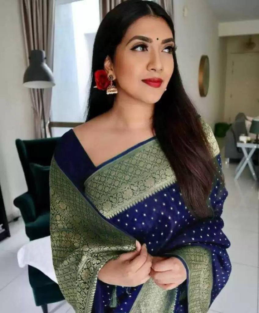 GEORGEOUS LICHI SILK JACQUARD WORK SAREE WITH UNSTITCHED BLOUSE BLUE