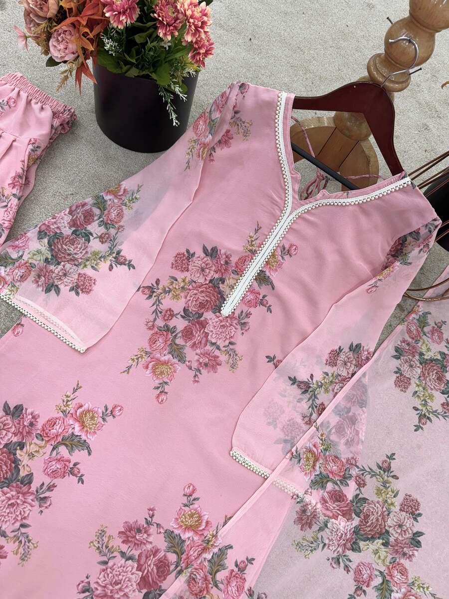 GORGEOUS GEORGETTE DIGITAL PRINT WORK TOP PATIYALA WITH DUPATTA BABY PINK