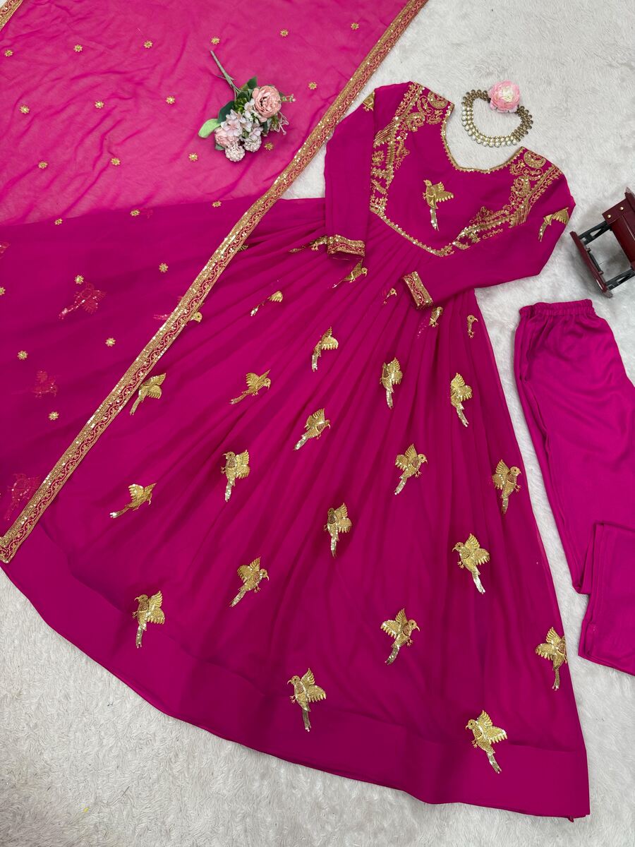 GORGEOUS GEORGETTE THREAD WITH SEQUENCE WORK GOWN BOTTOM WITH DUPATTA PINK