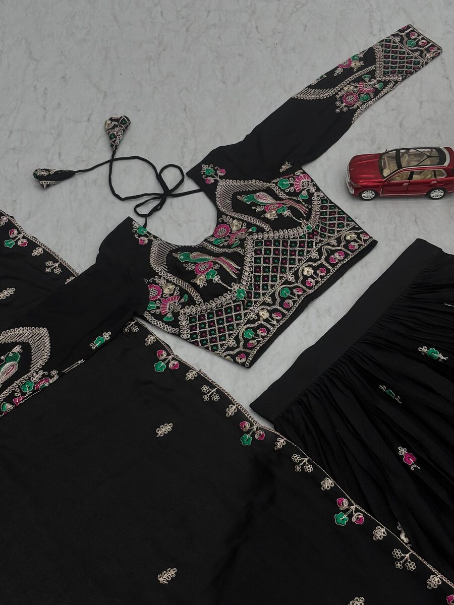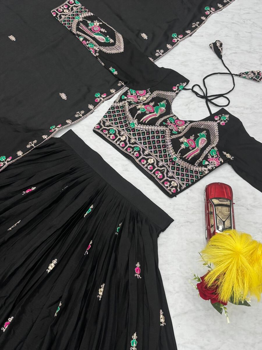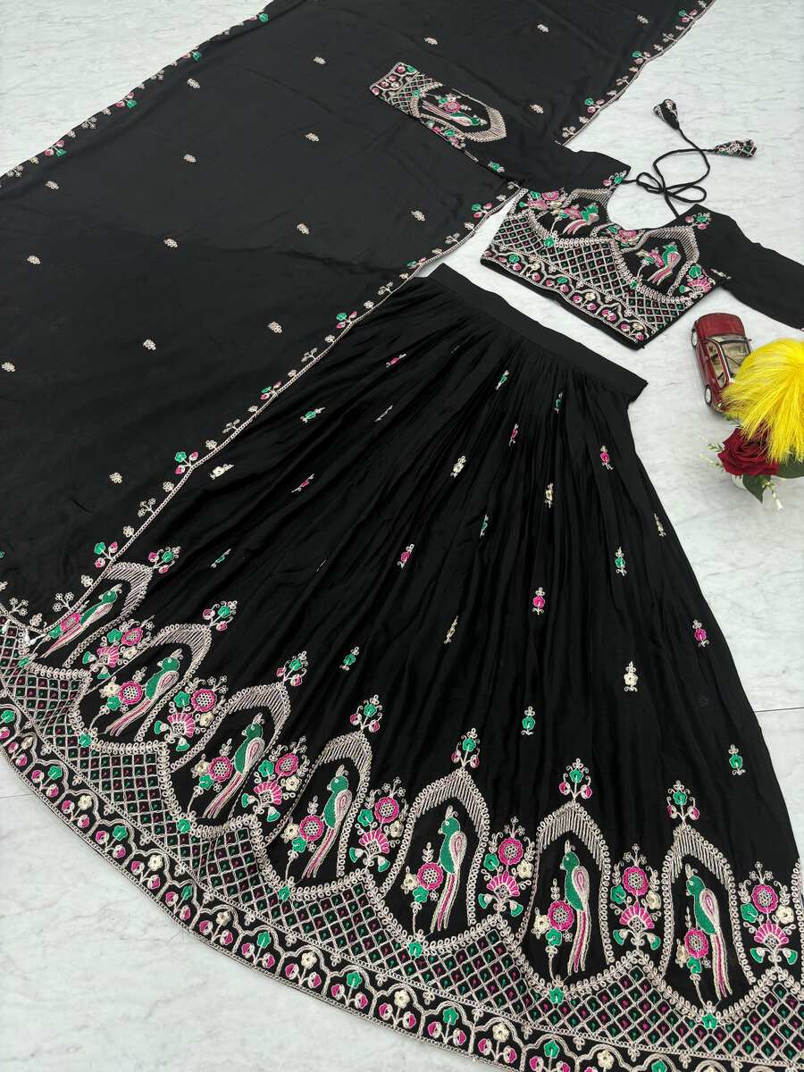 LATEST CHINON EMBROIDERY CODING THREAD WORK LEHENGA CHOLI WITH DUPATTA BLACK
