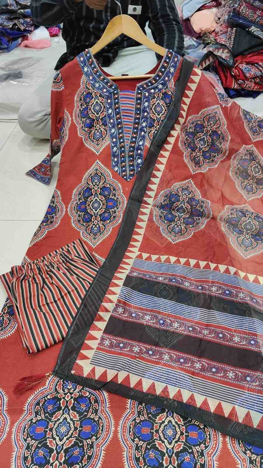 LATEST COTTON DIGITAL PRINT WITH SEQUENCE WORK TOP BOTTOM WITH DUPATTA BROWN