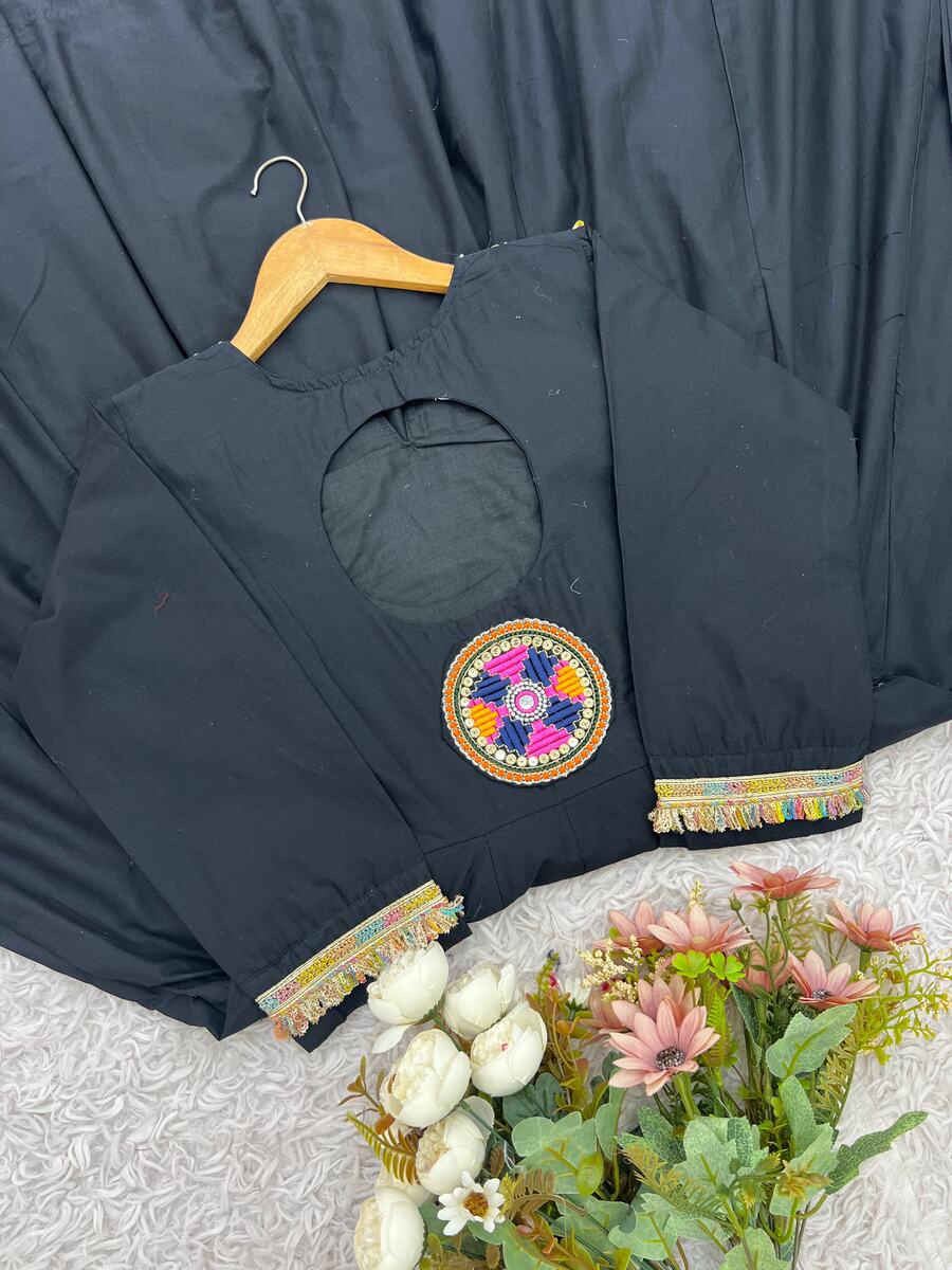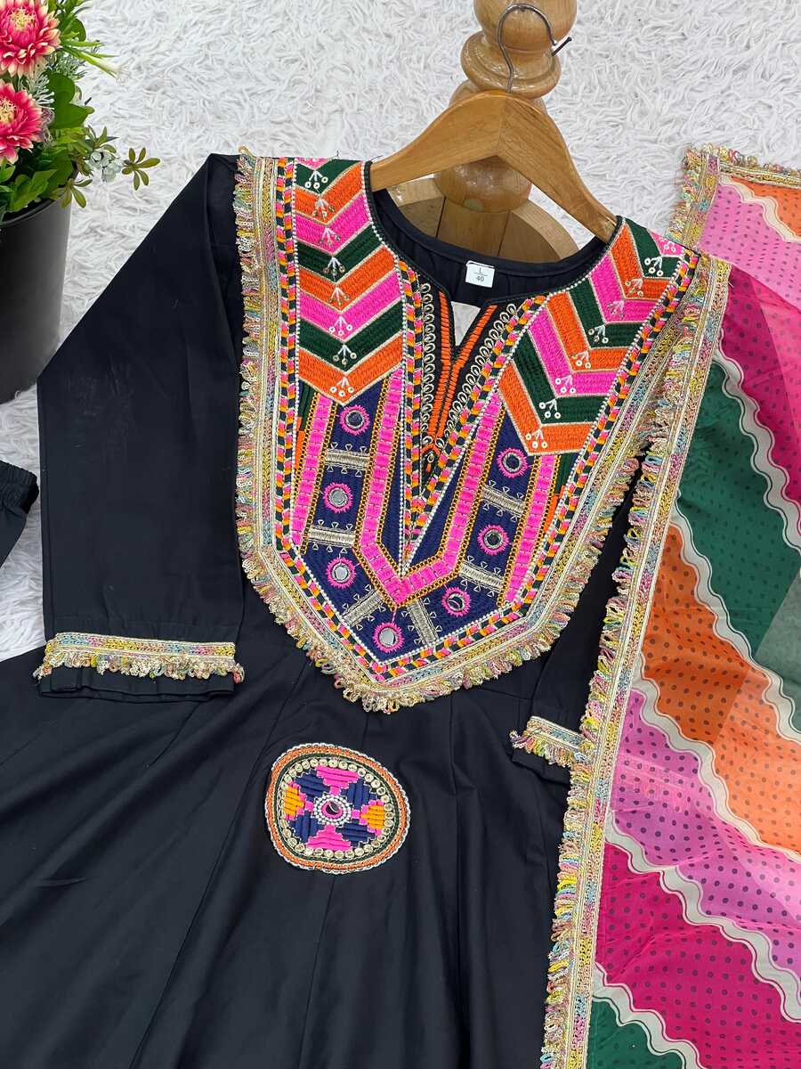 LATEST COTTON EMBROIDERY SEQUENCE WORK WITH REAL MIRROR WORK TOP BOTTOM WITH DUAPTTA BLACK