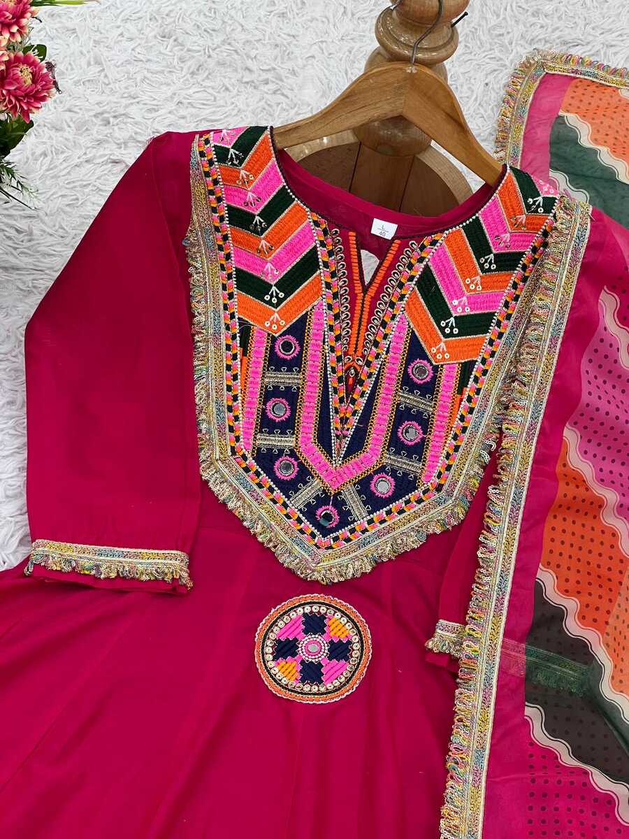 LATEST COTTON EMBROIDERY SEQUENCE WORK WITH REAL MIRROR WORK TOP BOTTOM WITH DUAPTTA PINK