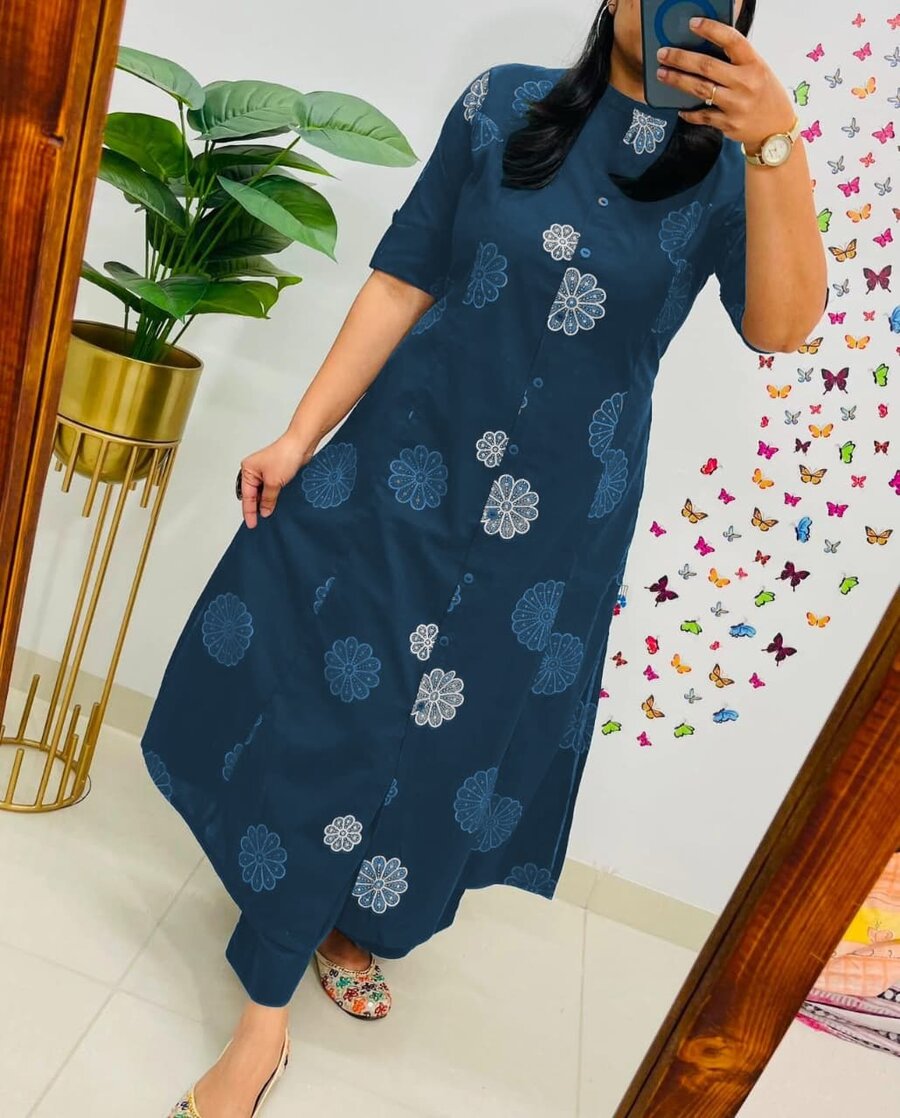 LATEST COTTON PIGMENT PRINTED WORK TOP BOTTOM SET NAVY BLUE