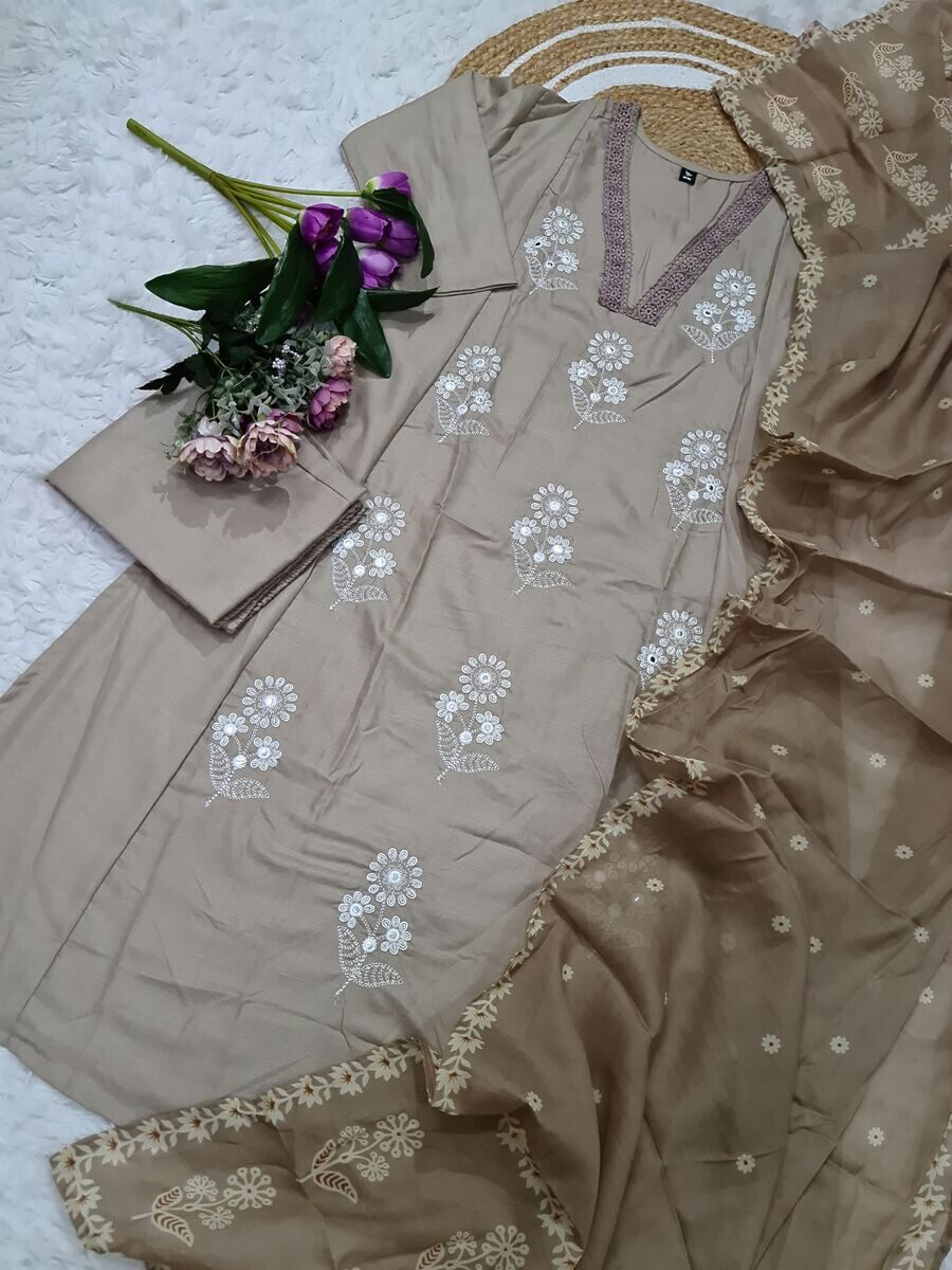 LATEST COTTON SEQUENCE EMBROIDERY WORK TOP BOTTOM WITH DUPATTA GREY