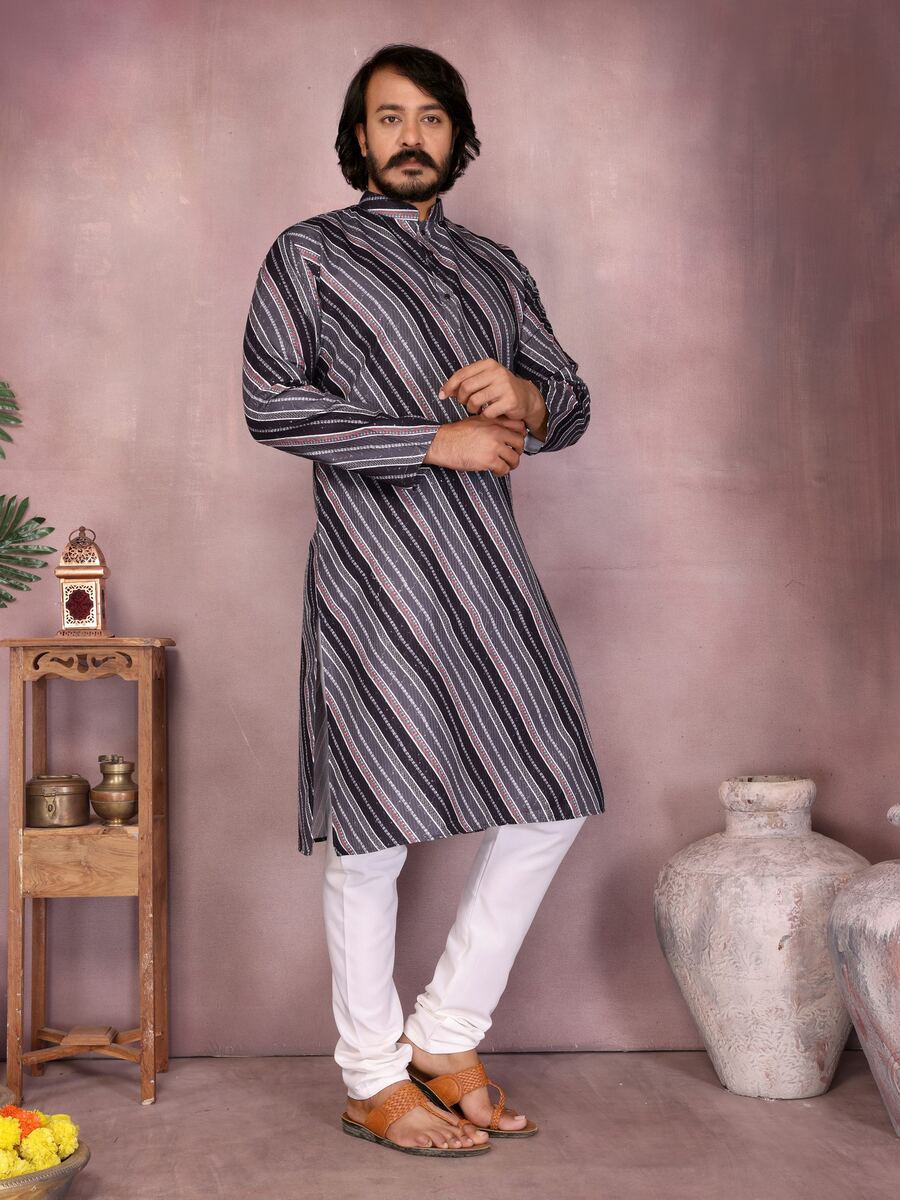 LATEST COTTON SEQUENCE WORK AND PRINTED MEN’S KURTA PAYJAMA BLACK