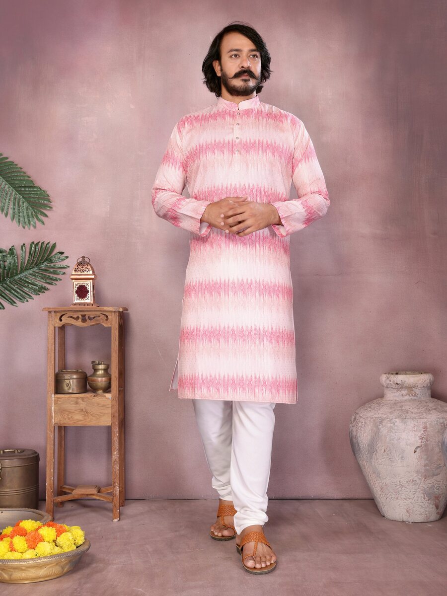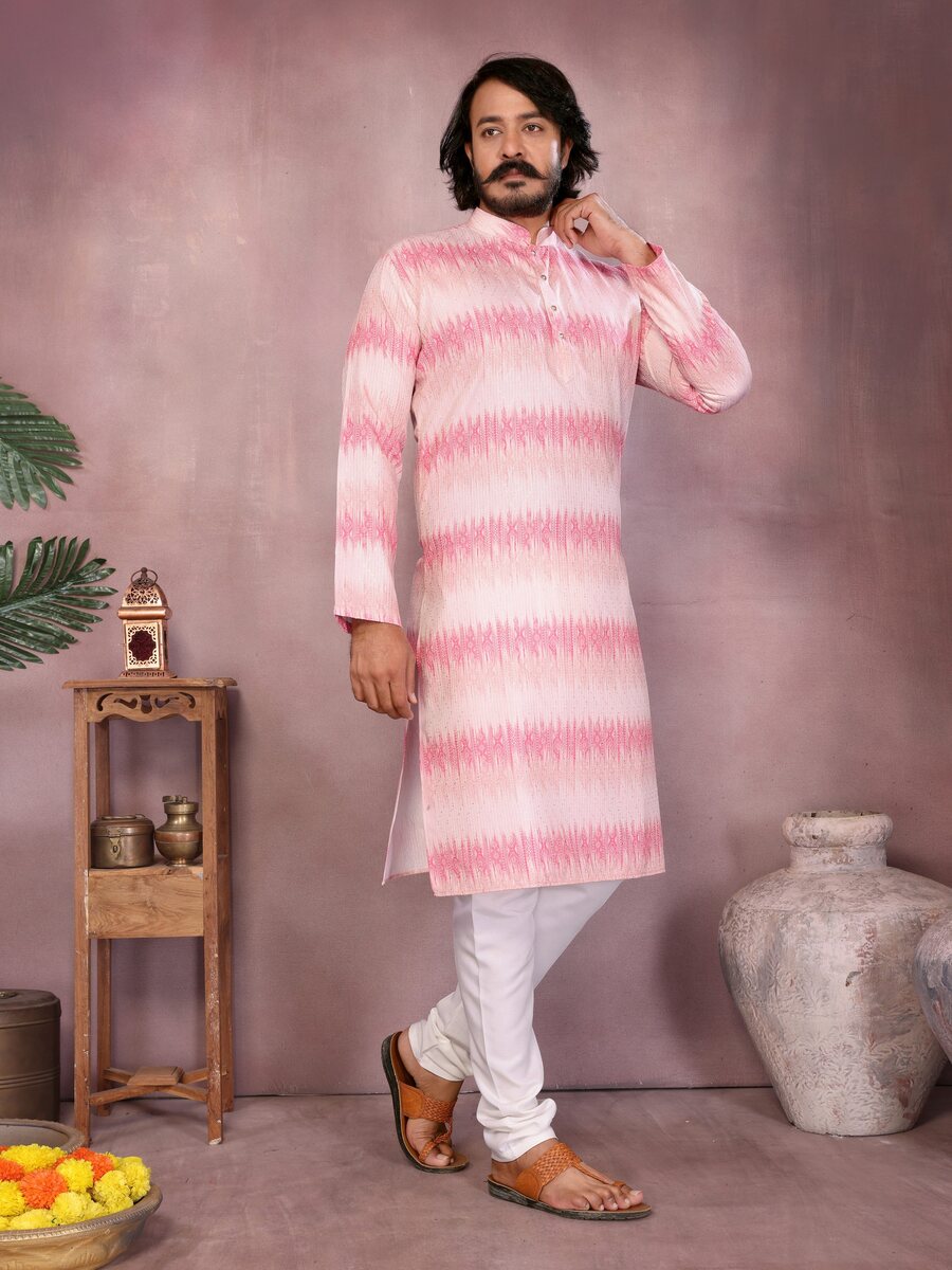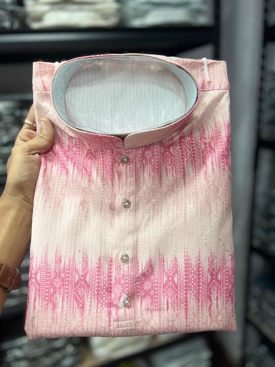 LATEST COTTON SEQUENCE WORK AND PRINTED MEN’S KURTA PAYJAMA PINK