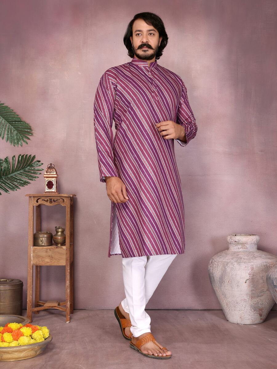 LATEST COTTON SEQUENCE WORK AND PRINTED MEN’S KURTA PAYJAMA WINE
