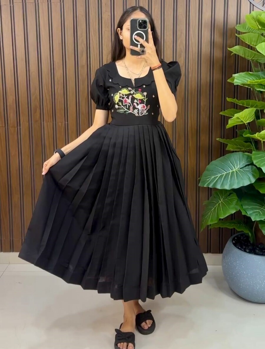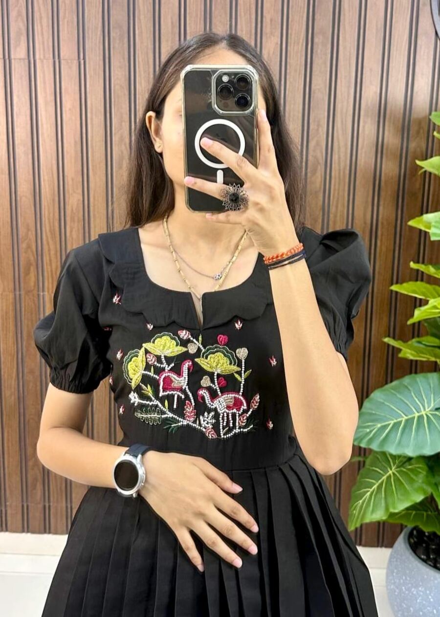 LATEST COTTON SILK HANDWORK ONE PIECE DRESS BLACK