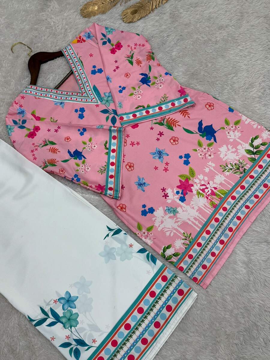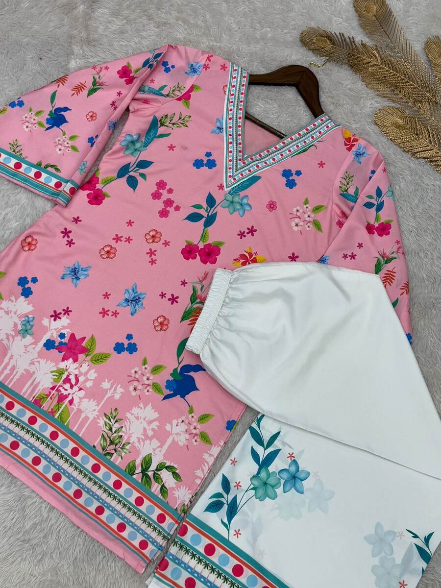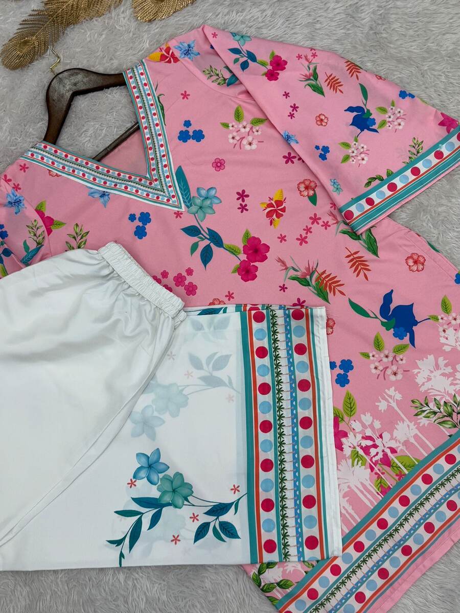 LATEST CREPE DIGITAL PRINT WORK CO-ORD SET BABY PINK