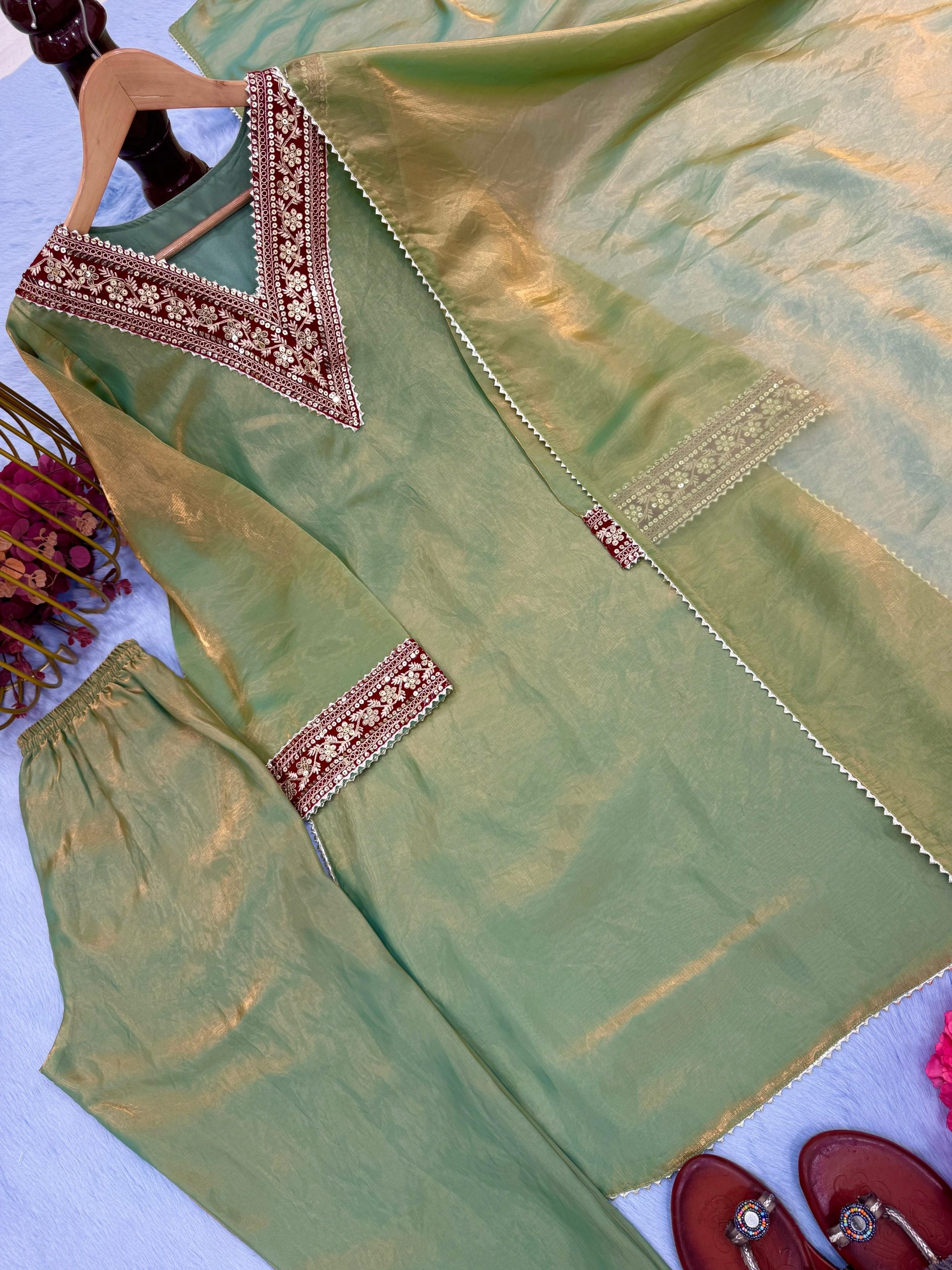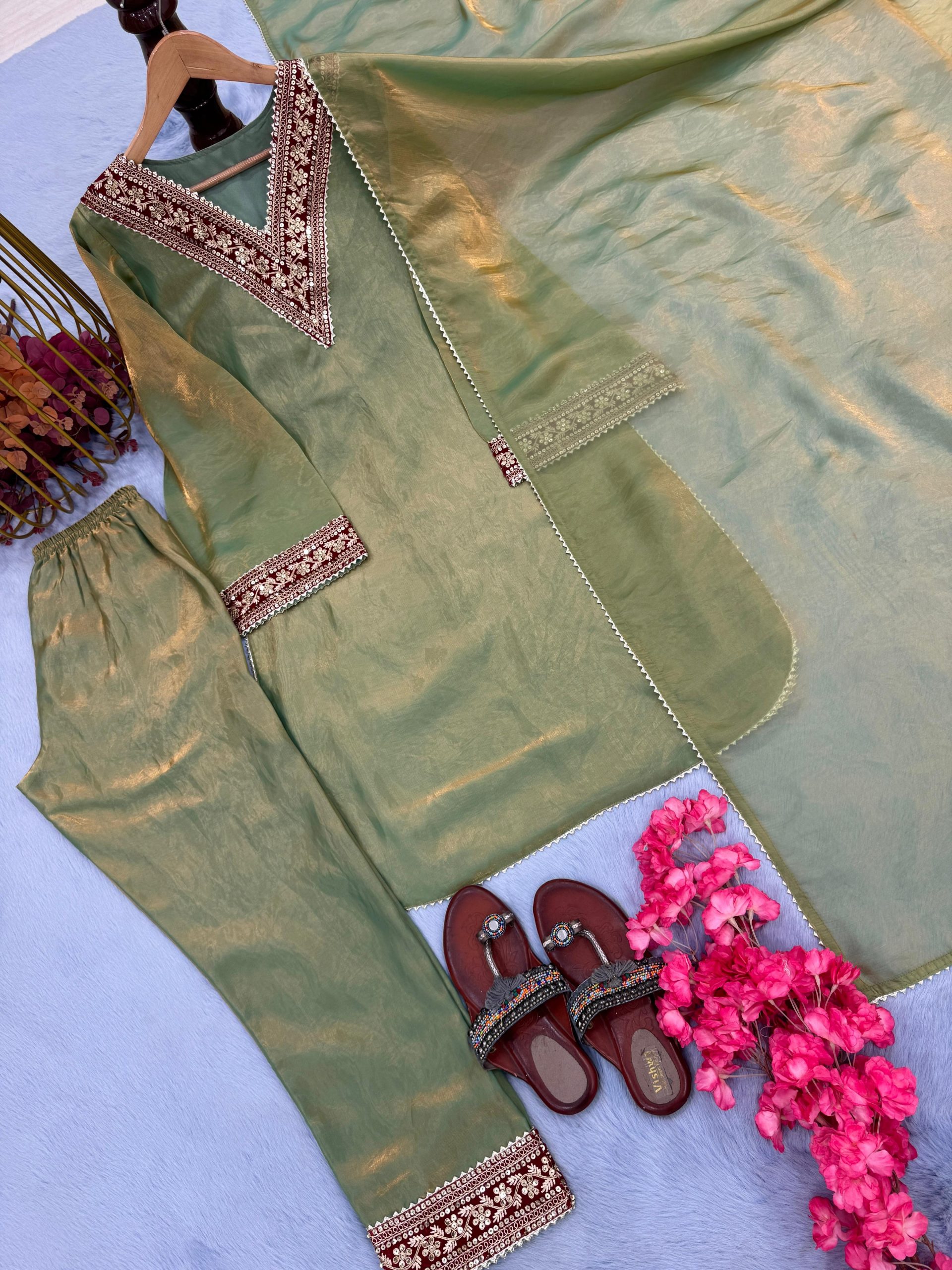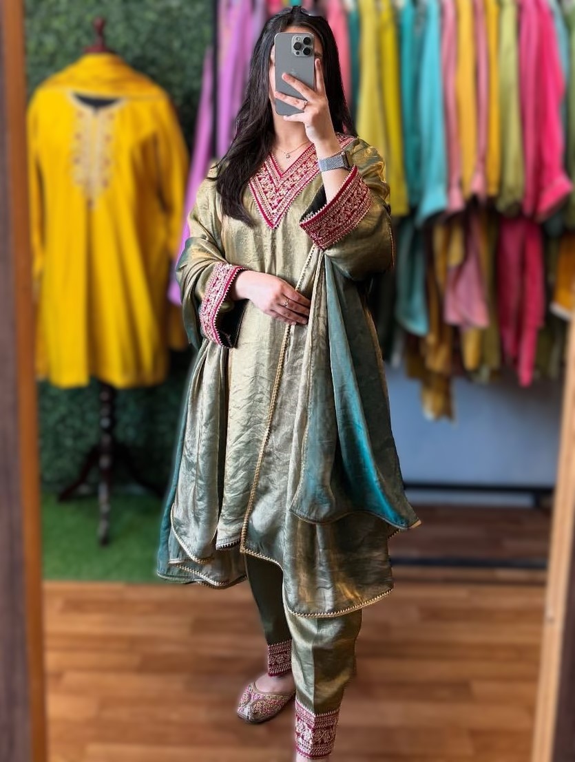 LATEST FENDY SILK SEQUENCE & CODING DORI WORK TOP BOTTOM WITH DUPATTA PISTA
