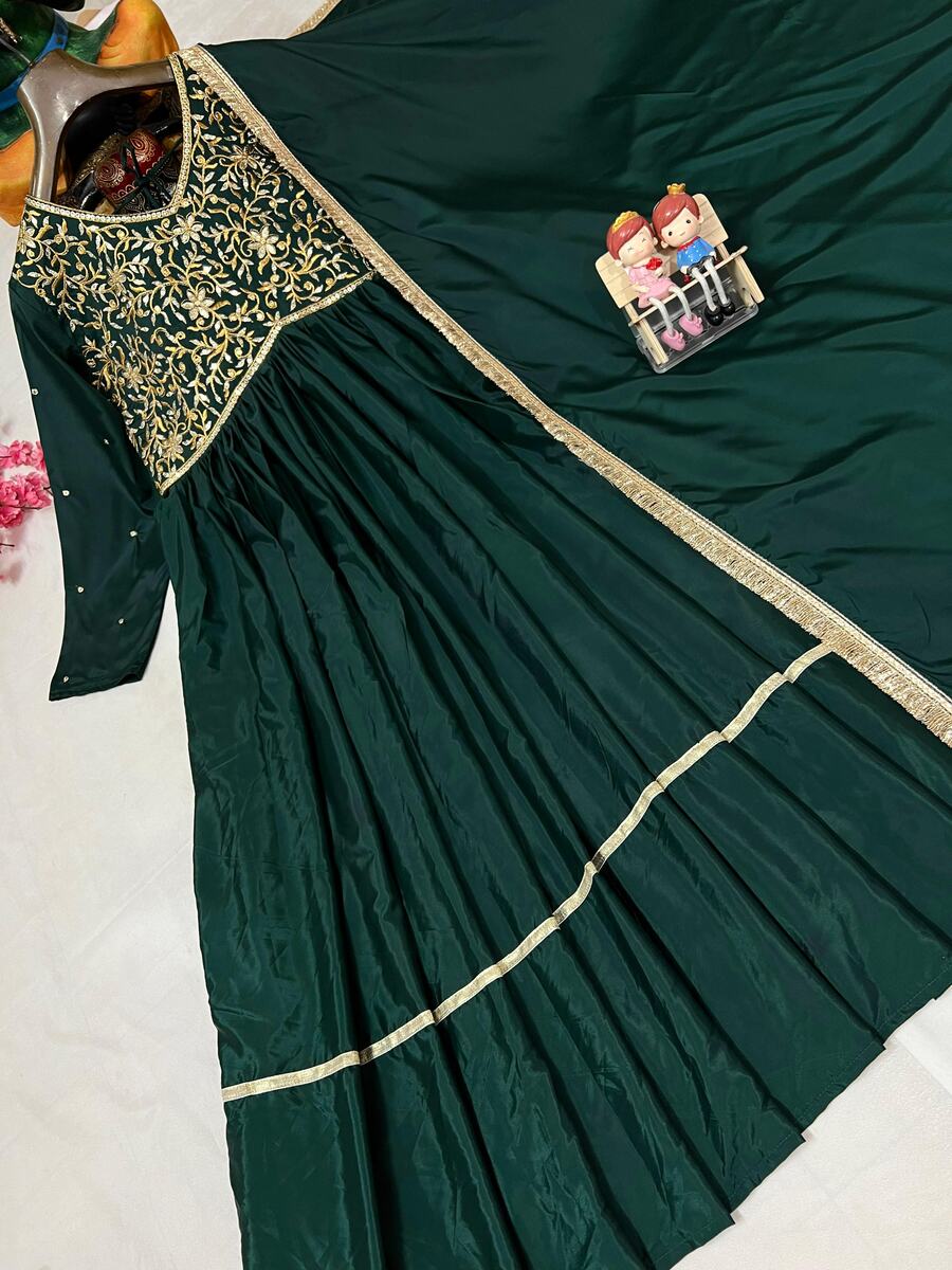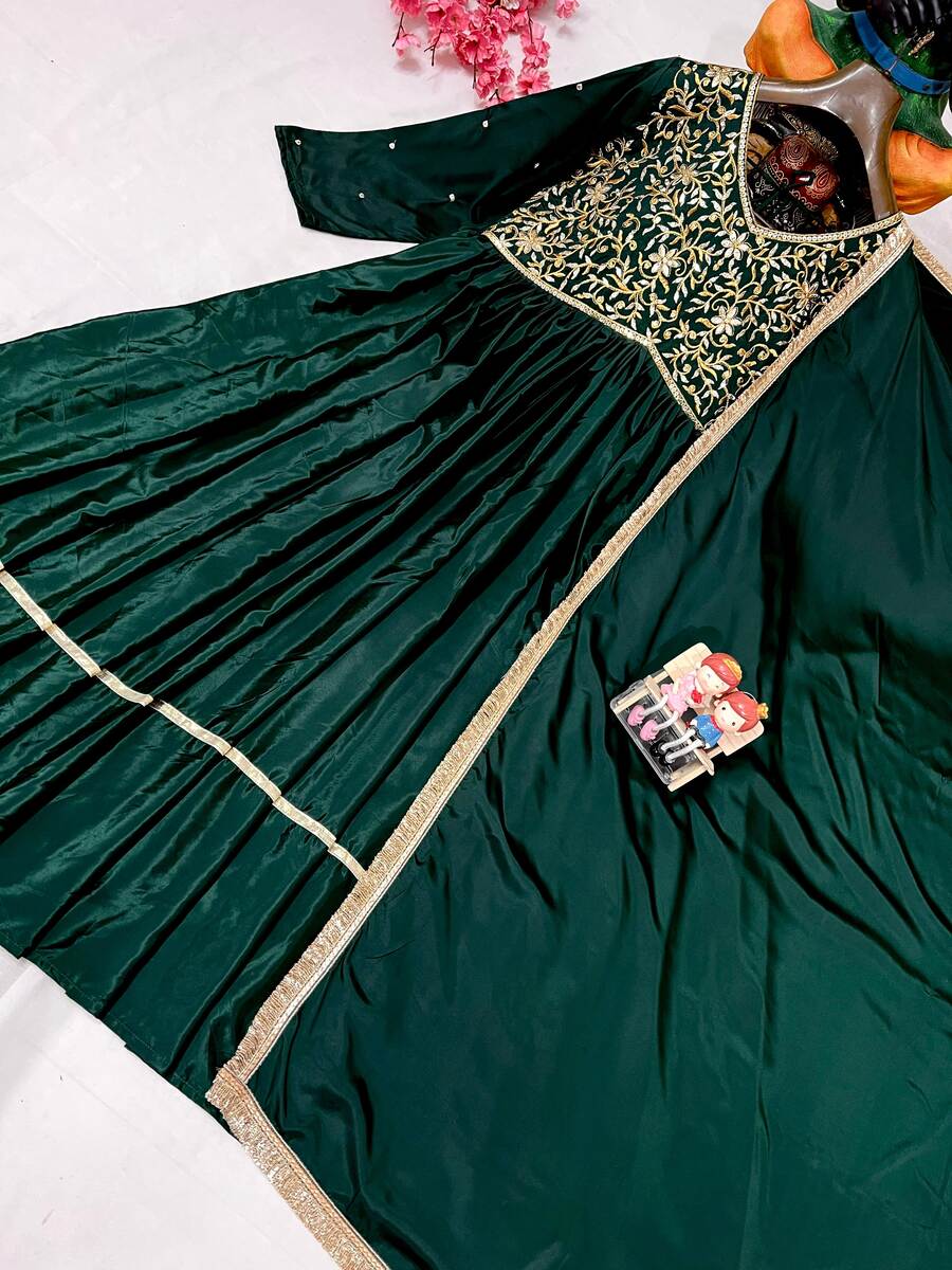 LATEST FRENCH CREPE SILK ZARI SEQUENCE EMBROIDERY WORK GOWN WITH DUPATTA GREEN