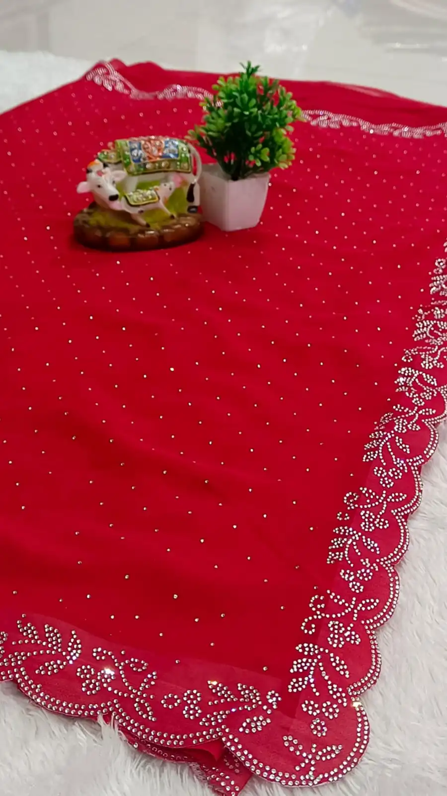 LATEST GEORGETTE DIAMOND WORK SAREE WITH UNSTITCHED BLOUSE RED