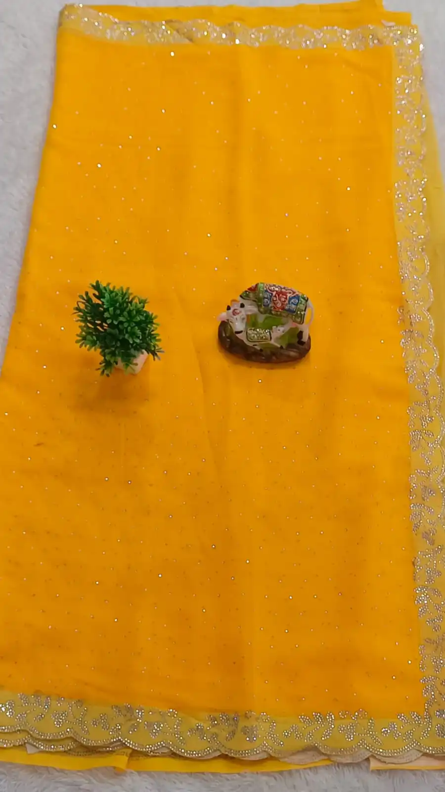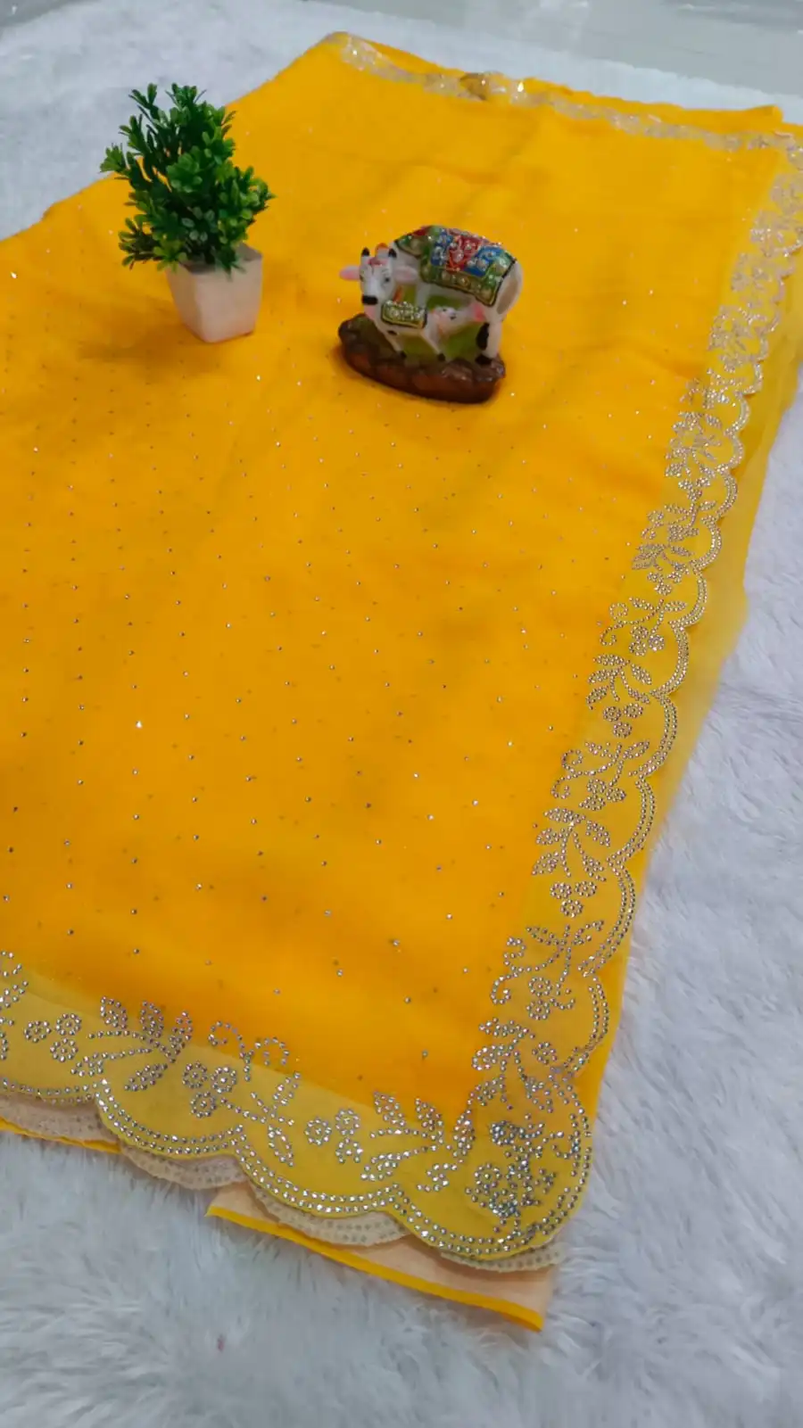 LATEST GEORGETTE DIAMOND WORK SAREE WITH UNSTITCHED BLOUSE YELLOW