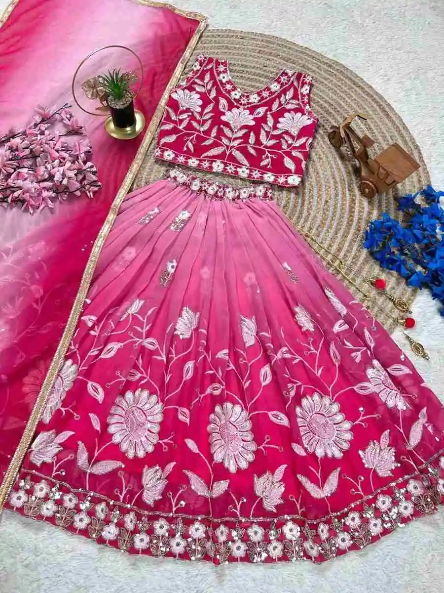 LATEST GEORGETTE EMBROIDERY SEQUENCE WORK KID’S LEHENGA CHOLI WITH DUPATTA PINK