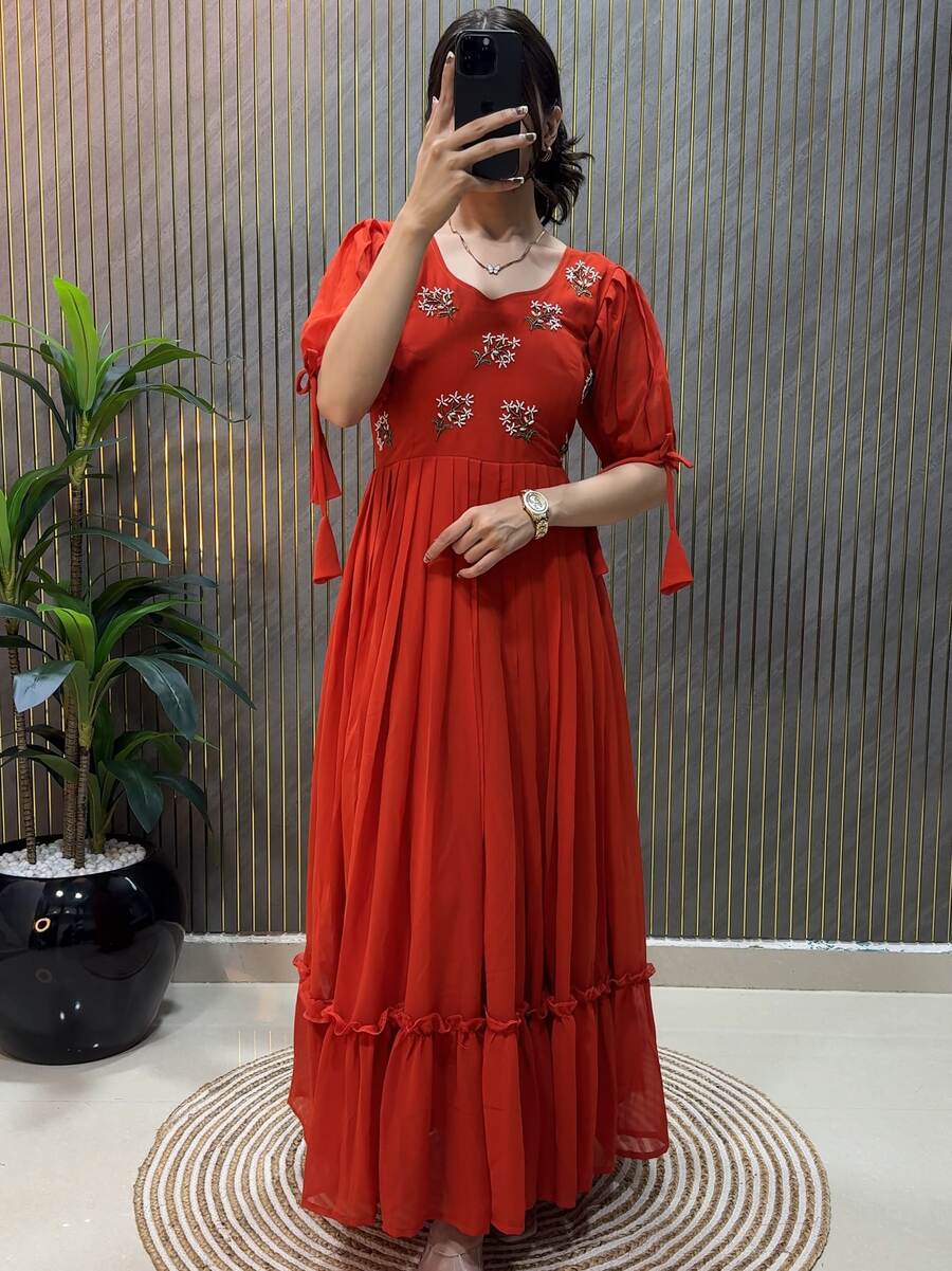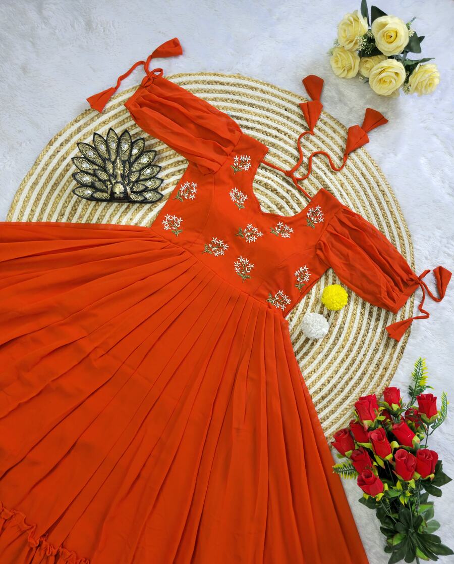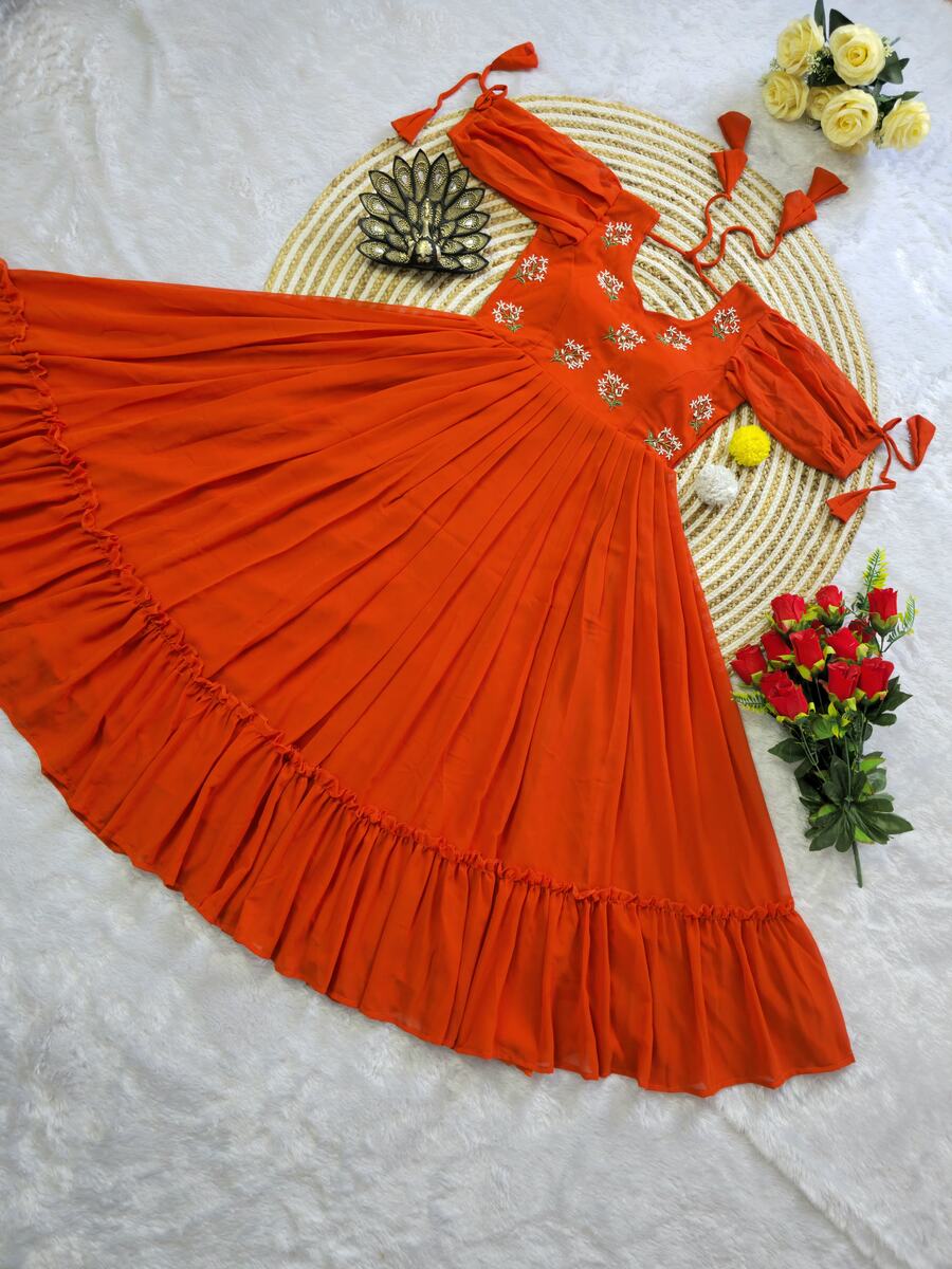 LATEST GEORGETTE HAND WORK ONE PEICE DRESS ORANGE