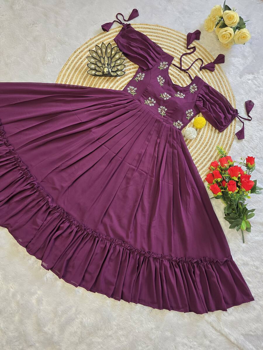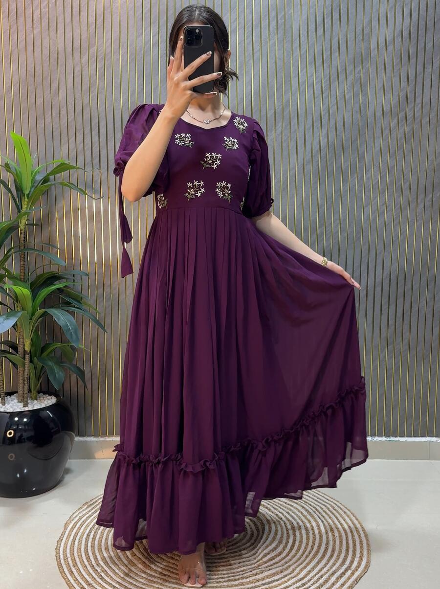 LATEST GEORGETTE HAND WORK ONE PEICE DRESS WINE