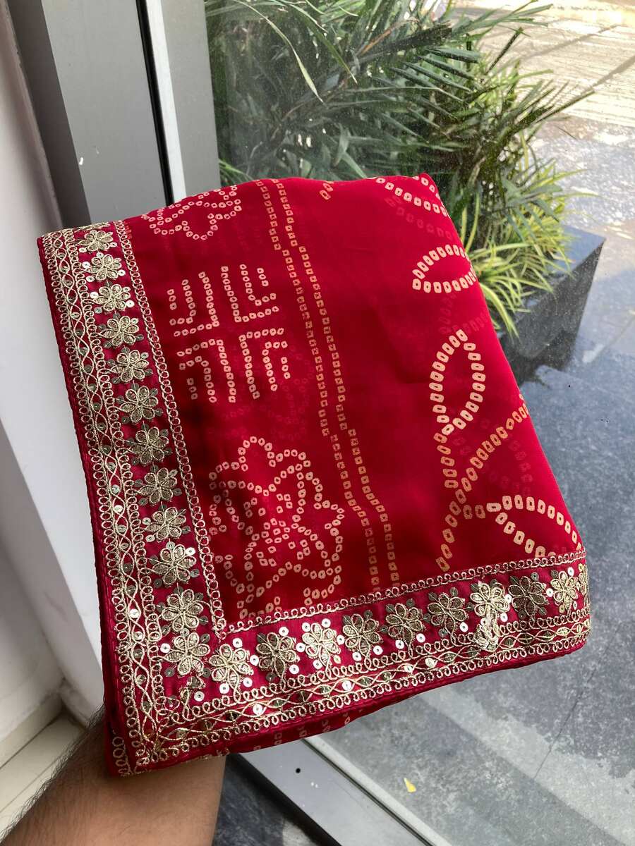 LATEST GEORGETTE RAJWADI BANDHEJ PRINT WITH EMBROIDERY WORK SAREE WITH UNSTITCHED BLOUSE RANI