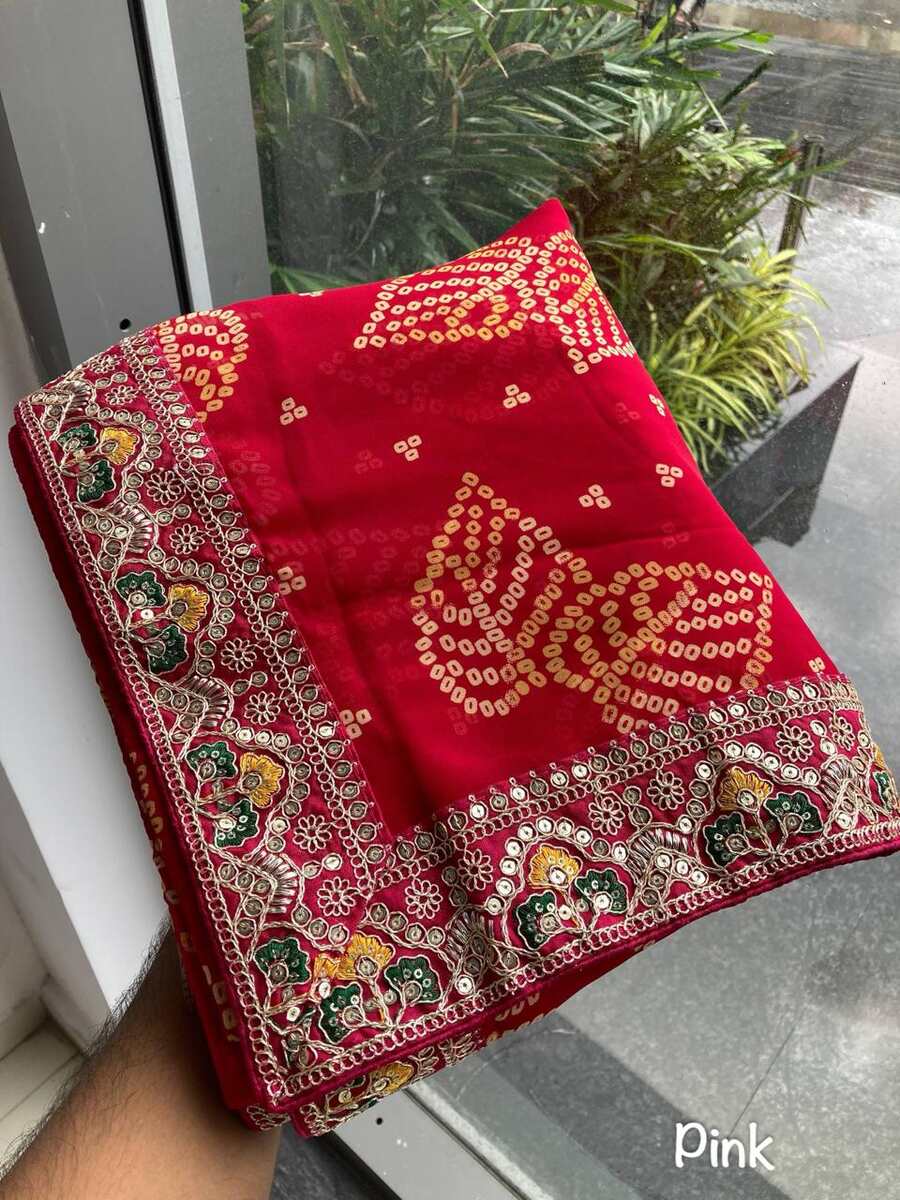 LATEST GEORGETTE RAJWADI BANDHEJ PRINT WITH EMBROIDERY WORK SAREE WITH UNSTITCHED BLOUSE RANI