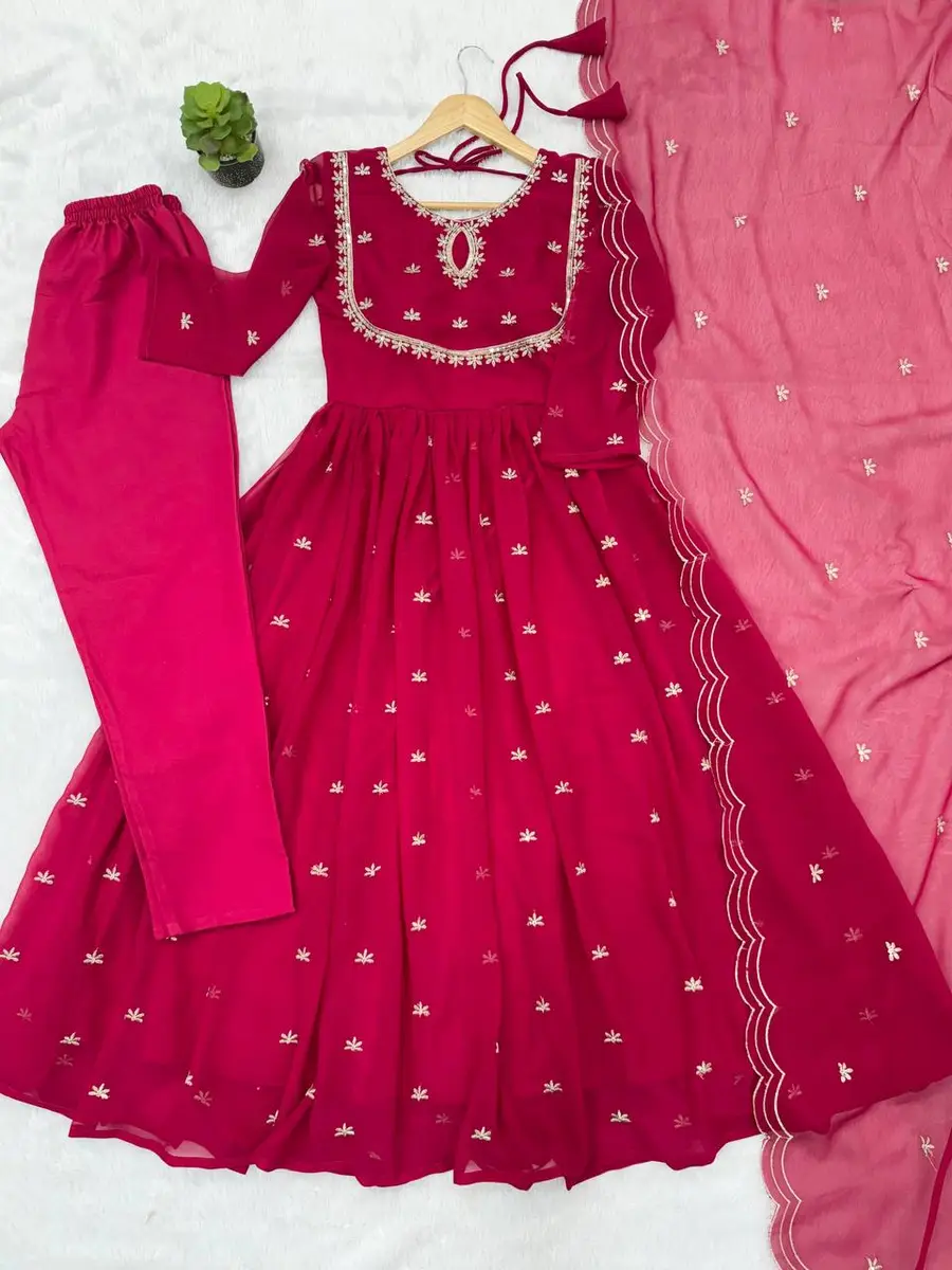 LATEST GEORGETTE SEQUENCE EMBROIDERY WORK GOWN BOTTOM WITH DUPATTA PINK