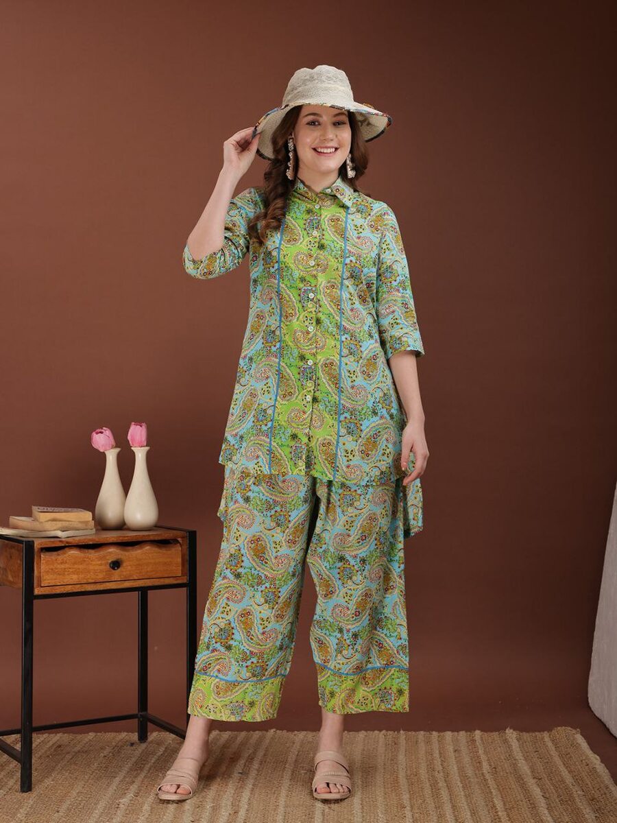 LATEST HEAVY RAYON PRINT WORK CO-ORD SET PISTA