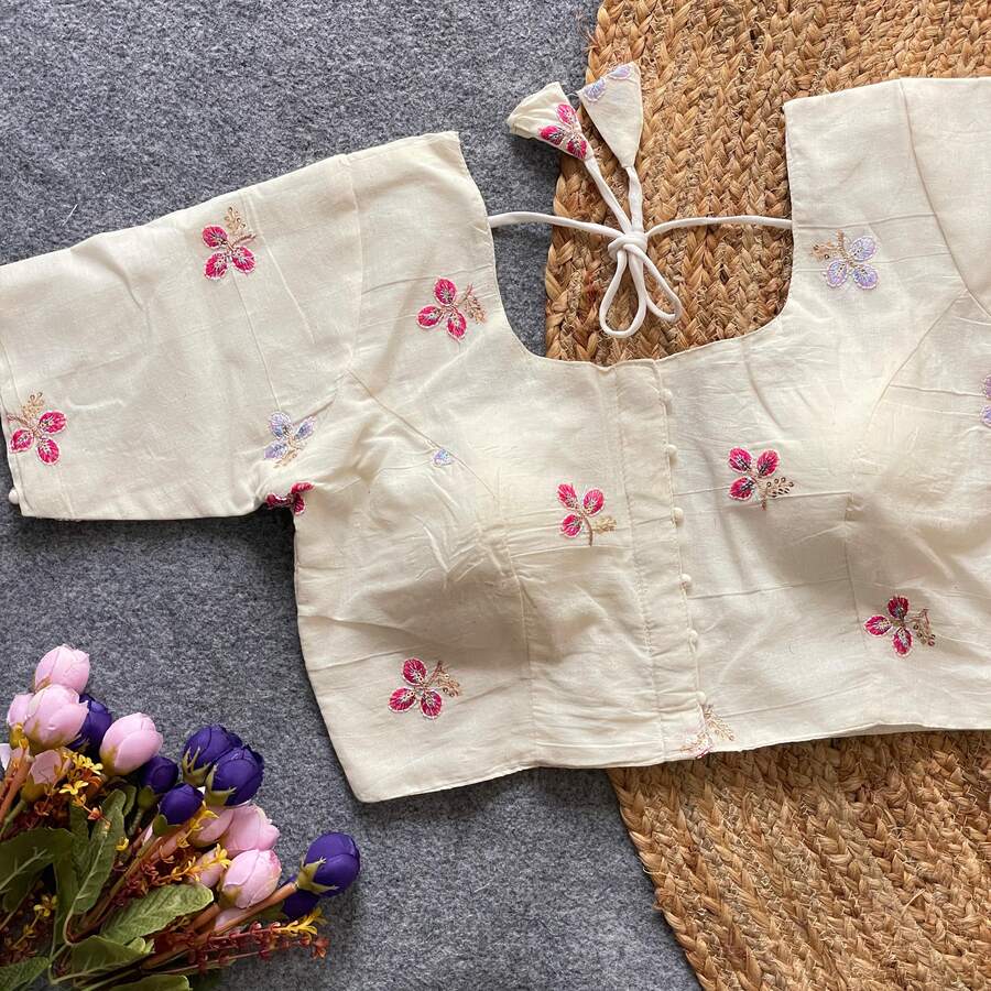 LATEST KHADI COTTON THREAD SEQUENCE WORK STITCHED BLOUSE OFF WHITE