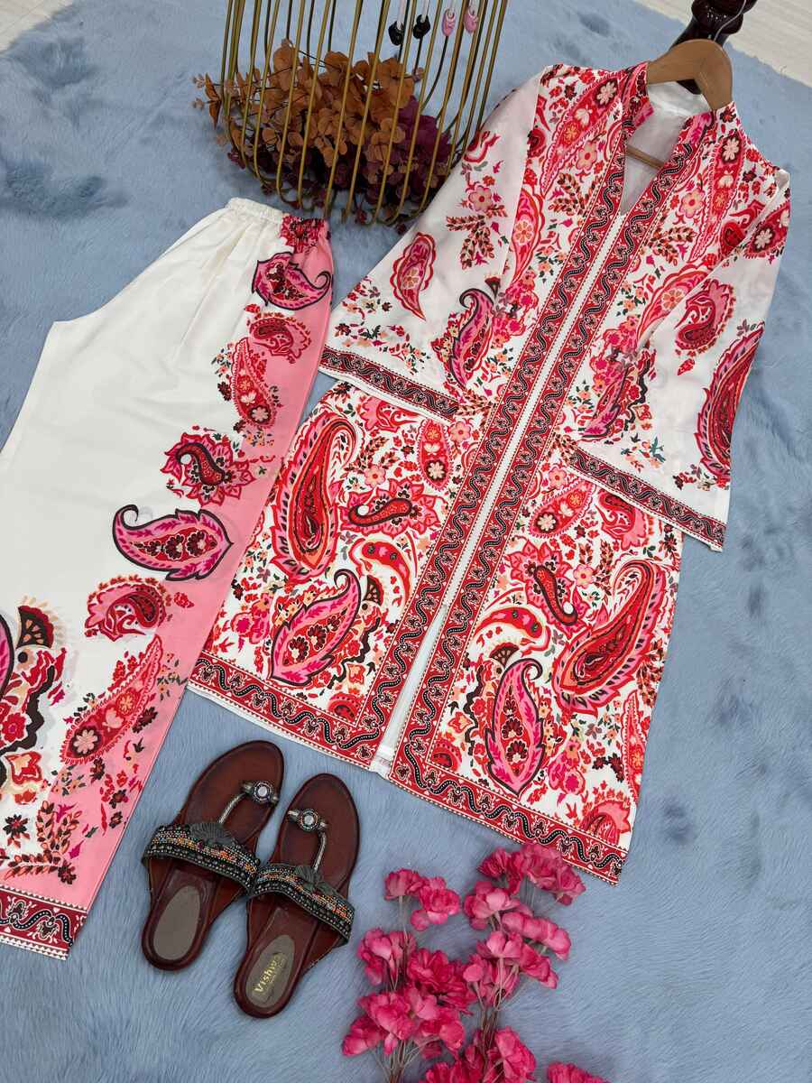 LATEST MALAI SATIN DIGITAL PRINT WORK CO-ORD SET RED