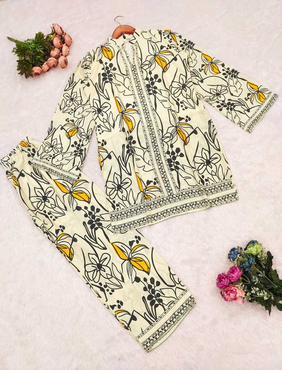 LATEST MALAI SATIN SILK DIGITAL PRINT WORK CO-ORD SET CREAM