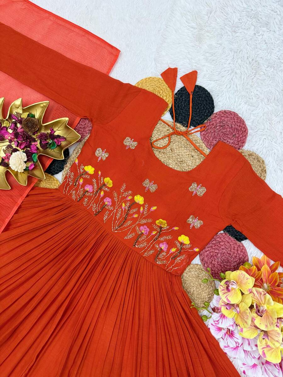 LATEST MUL MUL COTTON HAND WORK ANARKALI WITH DUPATTA ORANGE