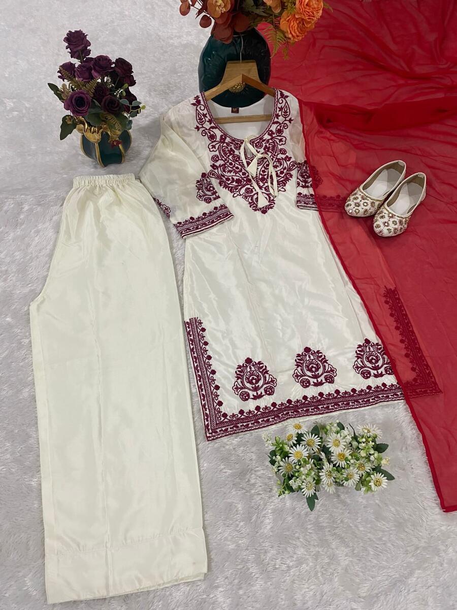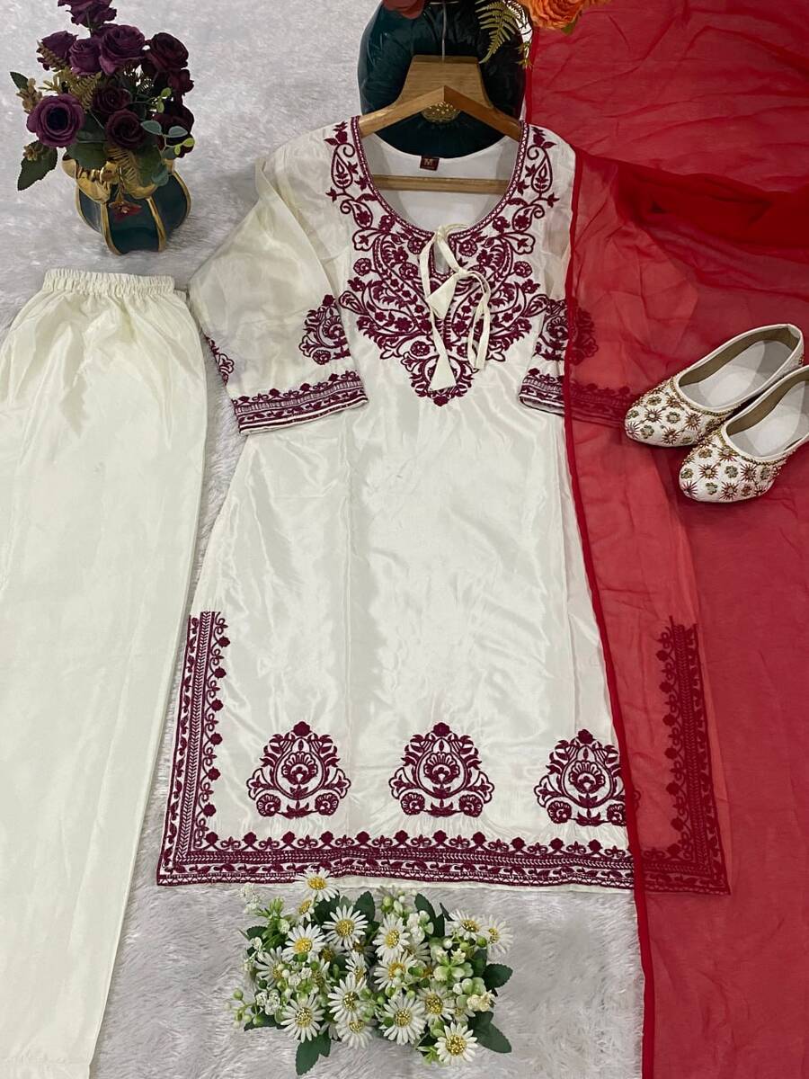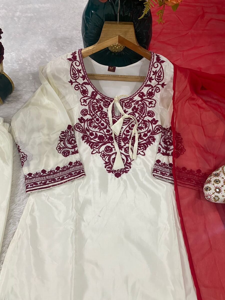 LATEST NATURAL CREPE EMBROIDERY WITH THREAD WORK TOP BOTTOM WITH DUPATTA OFF WHITE