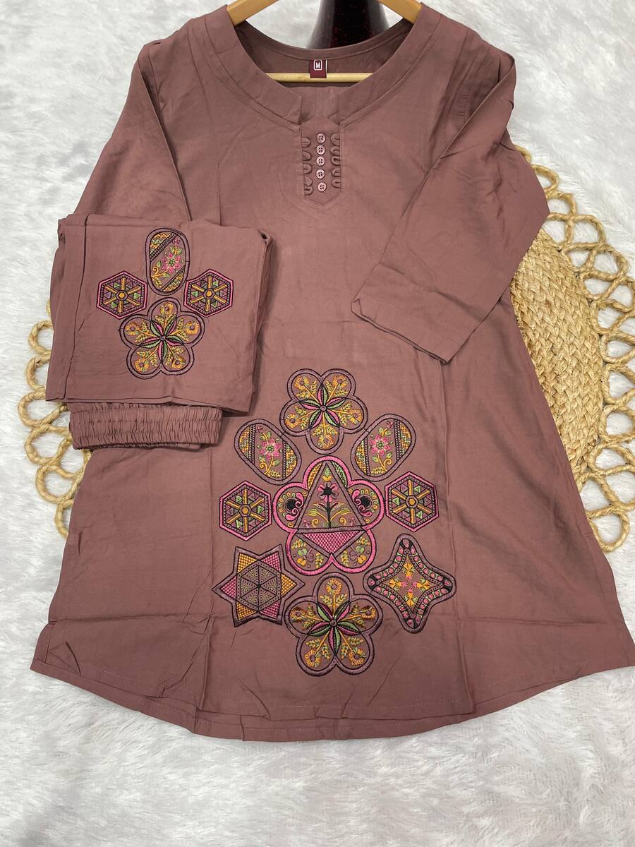 LATEST RAYON MULTI EMBROIDERY THREAD WORK CO-ORD SET BROWN