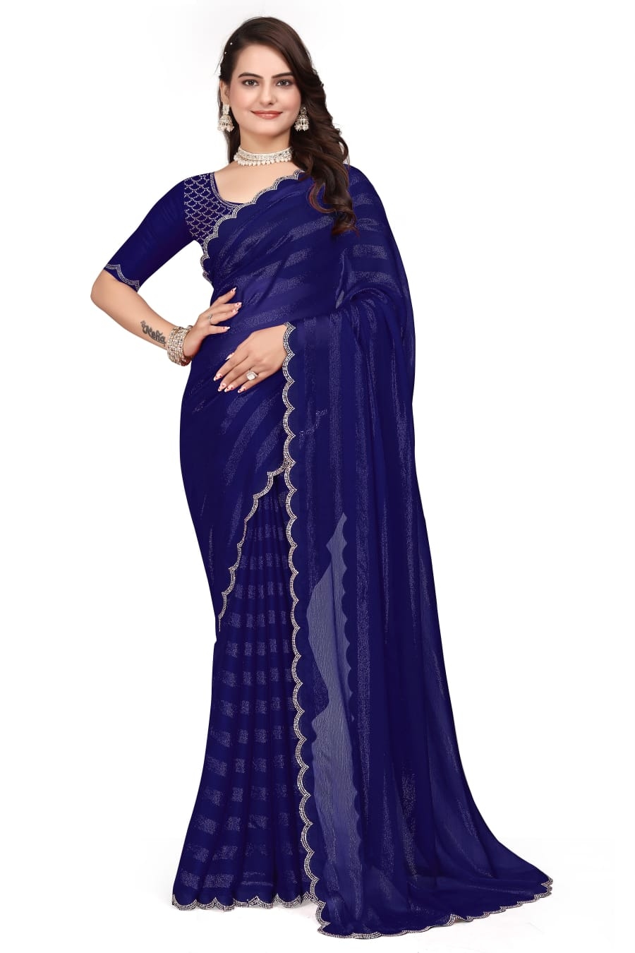 LATEST RIMZIM PATTA HOT FIX SAREE WITH UNSTITCHED BLOUSE NAVY BLUE