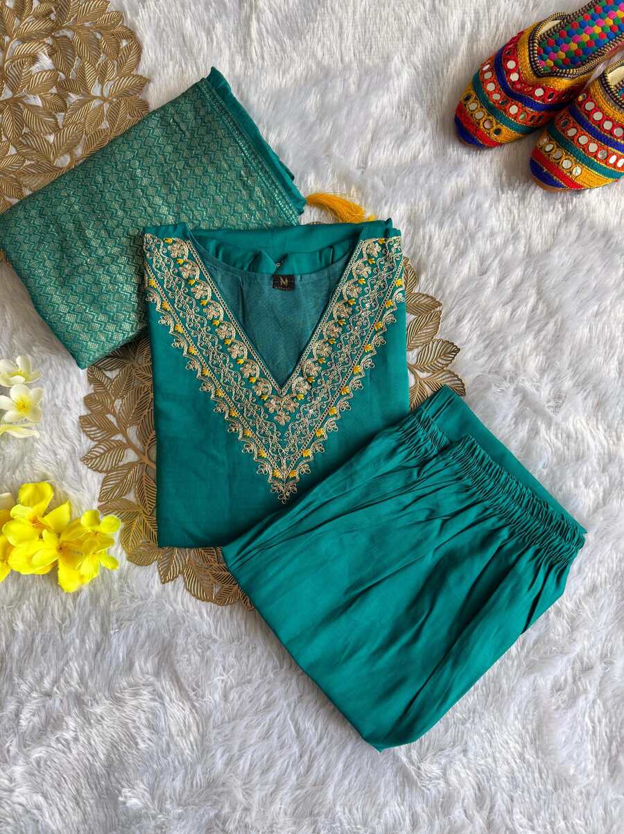 LATEST ROMAN SILK EMBROIDERY WITH SEQUENCE WORK TOP BOTTOM WITH DUPATTA RAMA