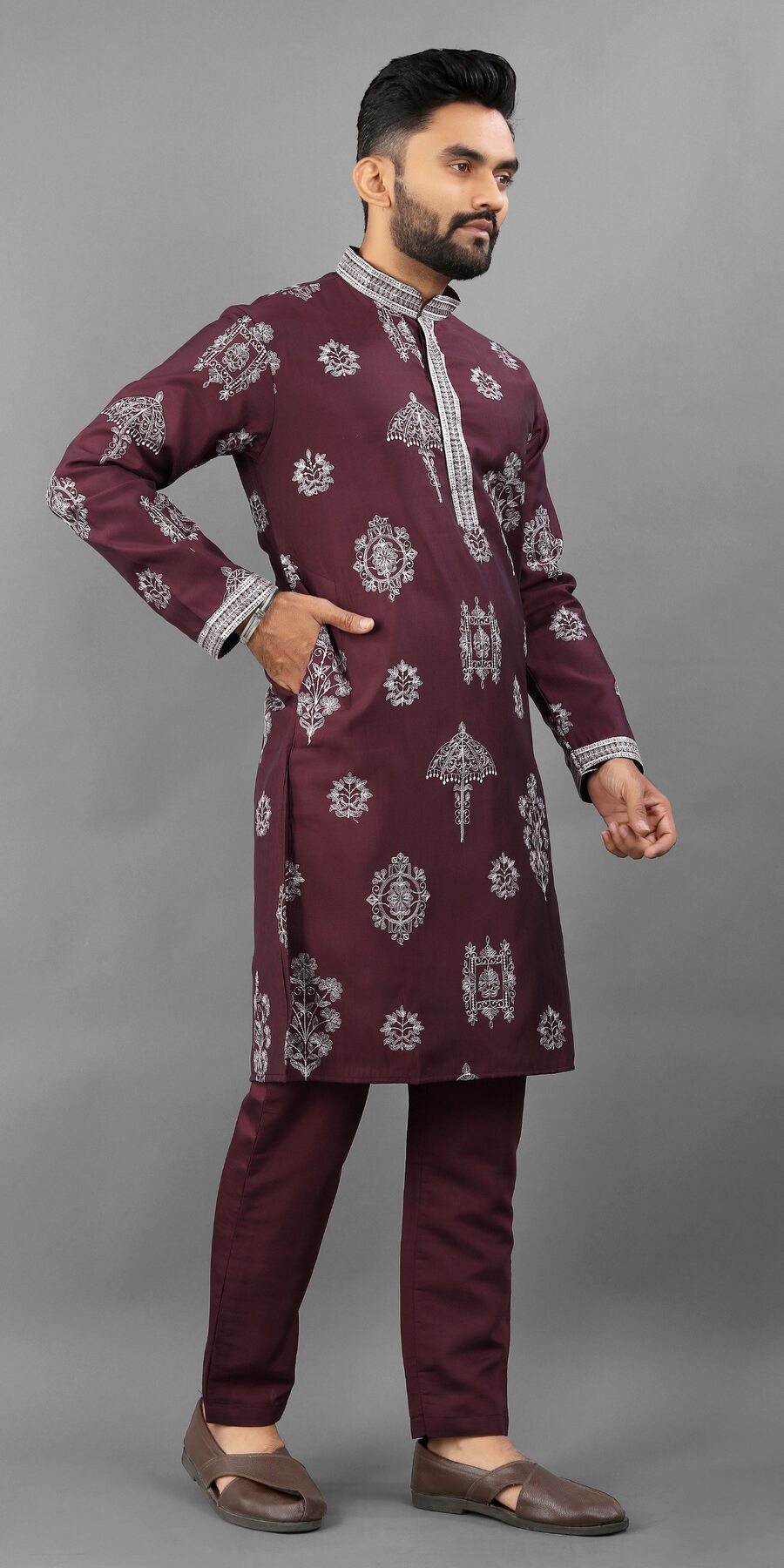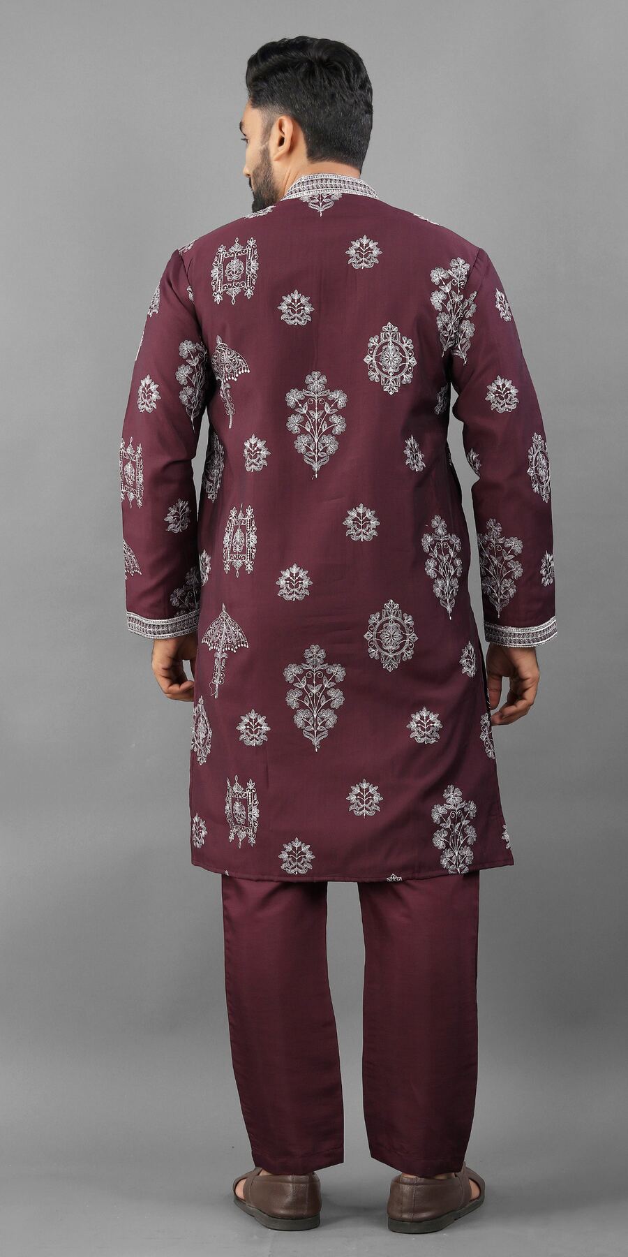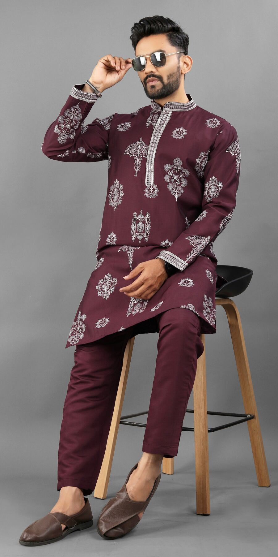 LATEST RUSSIAN SILK EMBROIDERY WORK KURTA PAYJAMA WINE