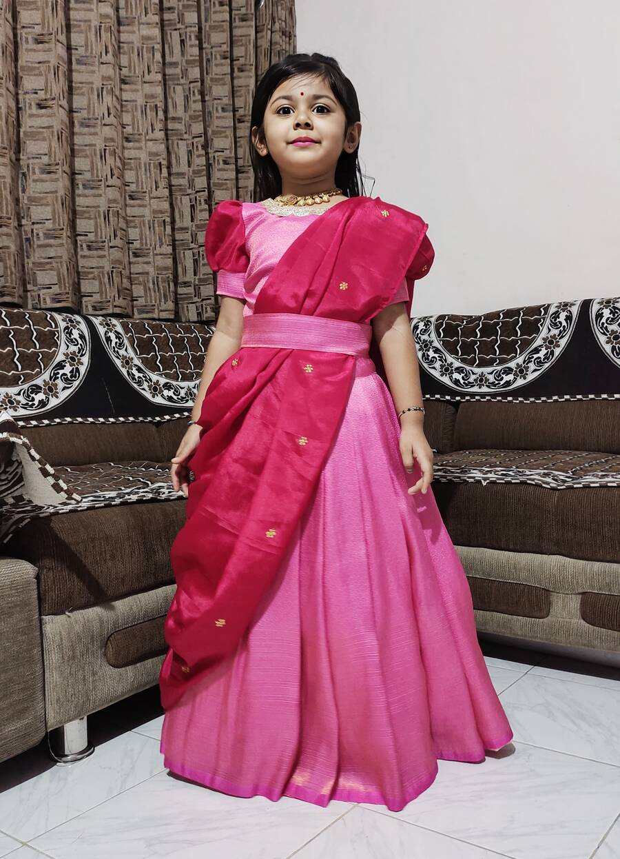 LATEST SOFT SILK ZARI WEAVING WORK KID’S LEHENGA CHOLI WITH DUPATTA PINK