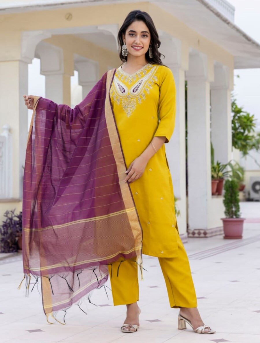 LATEST VARTICAN EMBROIDERY WORK TOP BOTTOM WITH DUPATTA YELLOW