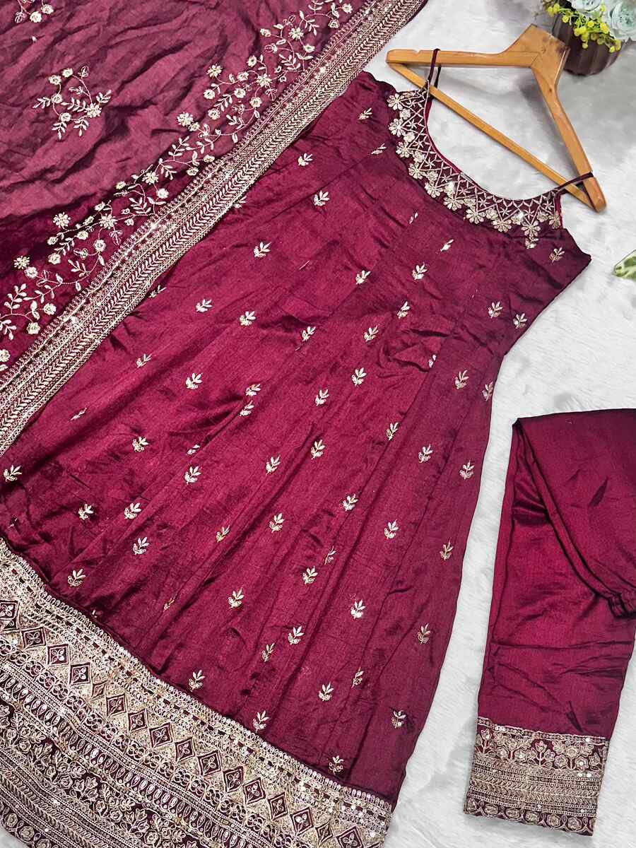 LATEST VICHITRA SILK EMBROIDERY ZARI CODING SEQUENCE WORK GOWN BOTTOM WITH DUPATTA MAROON