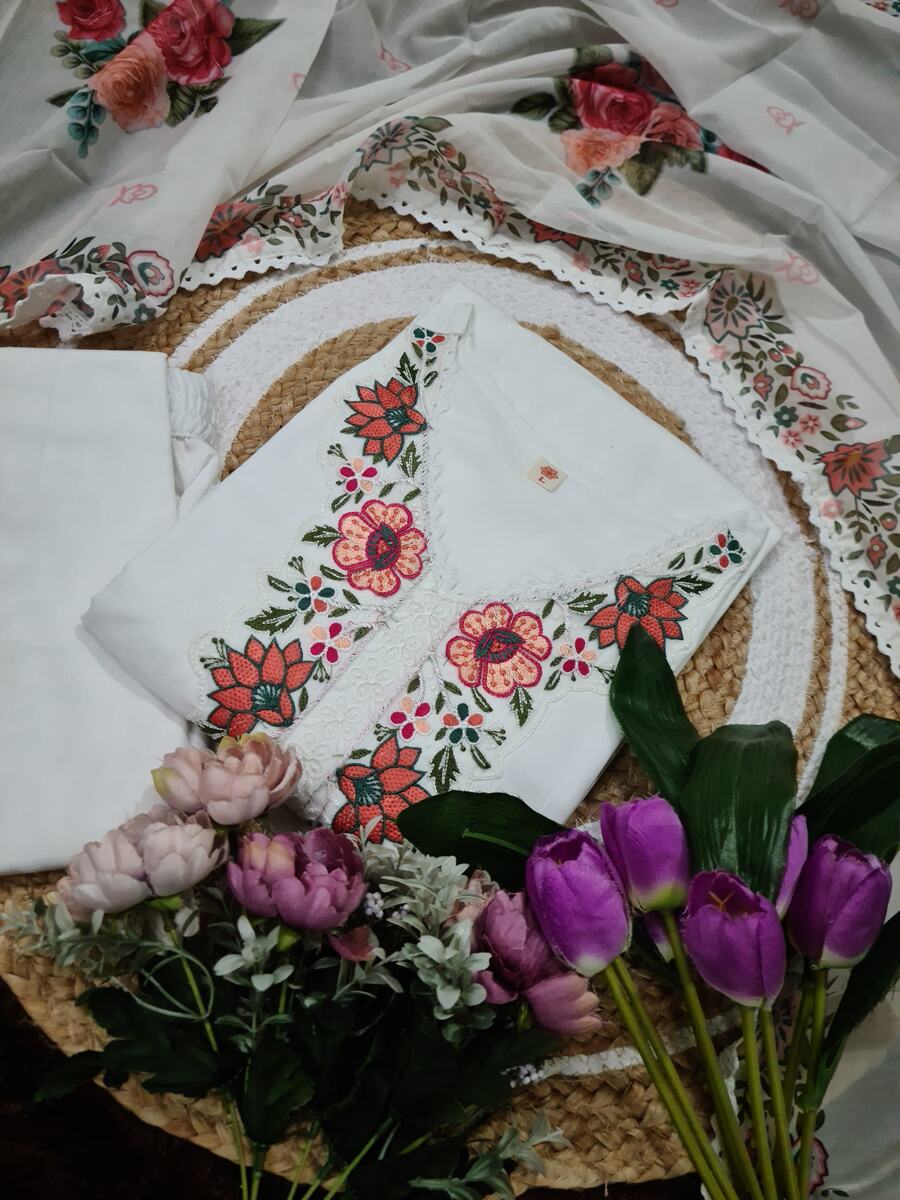 LATEST VISCOSE RAYON SEQUENCE EMBROIDERY WORK TOP BOTTOM WITH DUPATTA WHITE