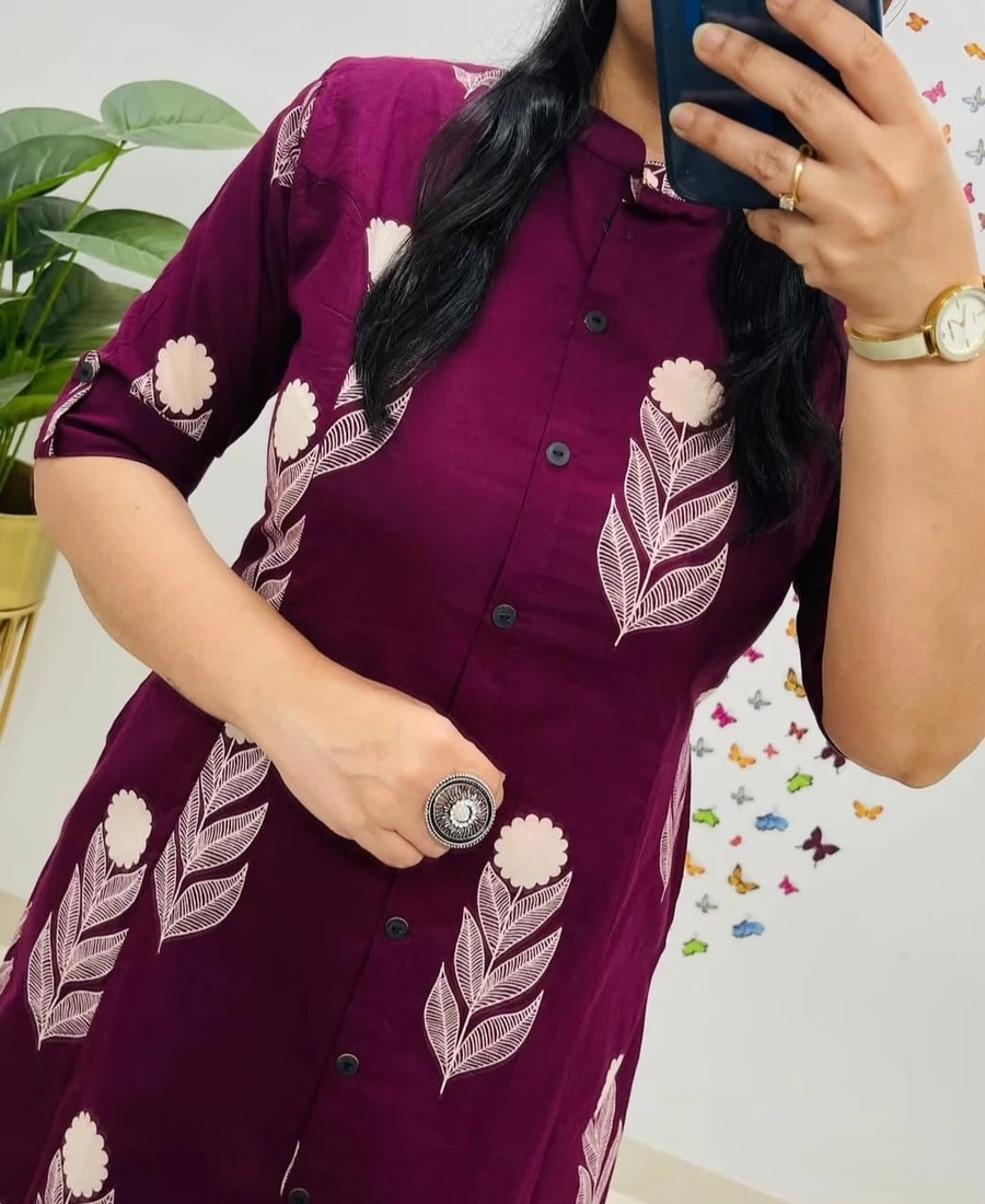 WORK :- PRINTED WITH FANCY BUTTON WORK