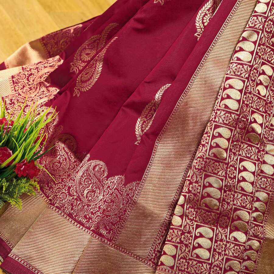 LUXURY SOFT LICHI SILK JACQUARD WORK SAREE WITH UNSTITCHED BLOUSE MAROON