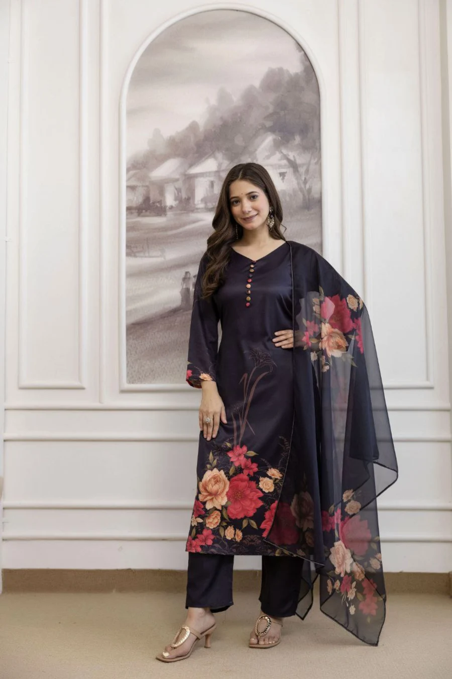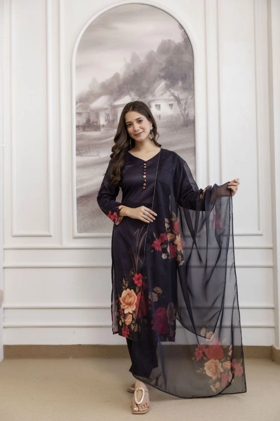 MODERN ASSAM SILK DIGITAL PRINT WORK TOP BOTTOM WITH DUPATTA BLACK