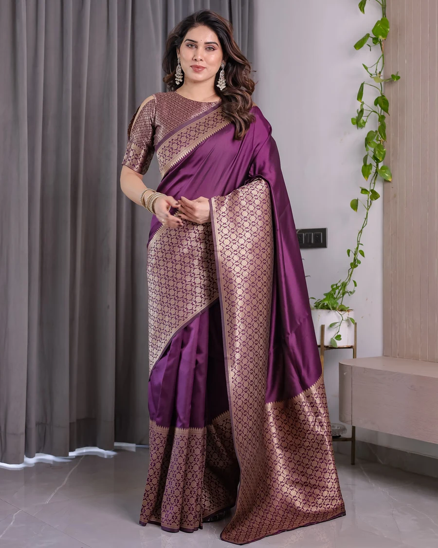 MODERN BANARASI SILK ZARI WOVEN WORK SAREE WITH UNSTITCHED BLOUSE PURPLE