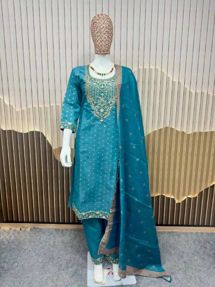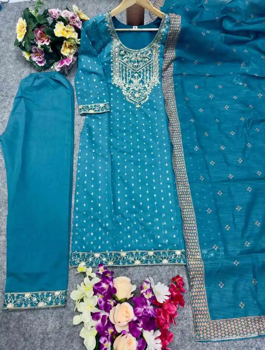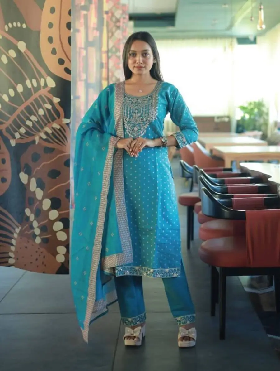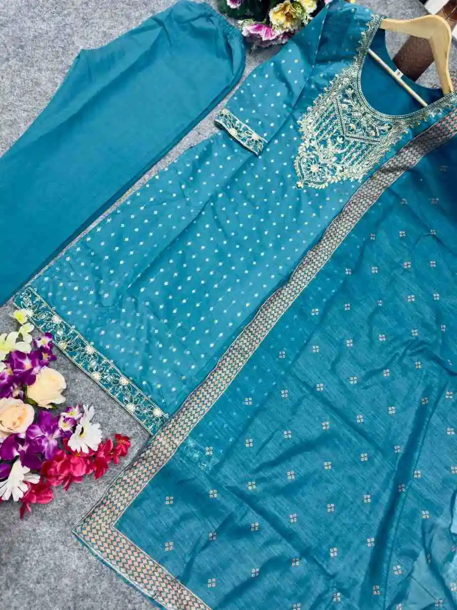 MODERN CHANDERI COTTON CODING SEQUENCE & JHARKAN BUTTI WORK TOP BOTTOM WITH DUPATTA SKY